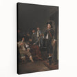 Step into the rich narrative of Baroque art with "The Hunting Party," a masterpiece that vividly captures the spirit of camaraderie and triumph. This painting depicts a group of hunters, their expressions and postures revealing a moment of pause after their successful endeavor. The artist's use of light and shadow accentuates the textures of the ornate tablecloth, the hunters’ attire, and the spoils of the hunt, making this piece a perfect example of Baroque storytelling and detail.