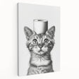 Bring humor and elegance to your bathroom with this charming wall art featuring a curious cat wearing a roll of toilet paper as a playful hat. The monochrome style enhances the intricate details, making this piece a striking addition to minimalist or modern bathroom decor.