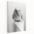 Add a touch of elegance and playfulness to your bathroom decor with this stunning wall art featuring a charming bird perched on a roll of toilet paper. The minimalistic black-and-white design ensures it complements any modern or minimalist bathroom interior, making it a timeless and versatile piece.