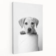 Bring a playful and heartwarming touch to your bathroom with this delightful wall art featuring an adorable puppy peeking over a toilet roll. This charming black-and-white design is perfect for adding a cozy, welcoming vibe to your space while maintaining a modern and minimalist aesthetic. Ideal for animal lovers and those seeking unique bathroom wall decor, this artwork effortlessly combines cuteness with style.