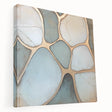 Enhance your bedroom decor with this modern bedroom art, featuring an elegant blend of blue and gold hues with an organic, stone-inspired design. This high-quality framed canvas print adds a touch of sophistication and tranquility, making it an excellent choice for contemporary interiors. The metallic gold detailing creates a luxurious contrast against the soft blue and neutral tones, bringing warmth and depth to your space.