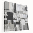 Enhance your bedroom with this modern geometric abstract wall art, featuring a sophisticated black, white, and gray palette. The collage-like composition of textured shapes creates depth and contrast, making it a perfect choice for minimalist and contemporary bedroom decor. This artwork blends abstract expressionism with structured design, making it an ideal centerpiece for modern interiors.