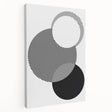 Enhance your space with this minimalist wall decor, a striking blend of geometric precision and modern elegance. This contemporary canvas print features overlapping circles with intricate diagonal line patterns, creating a balanced and sophisticated aesthetic. The monochrome palette of black, white, and gray makes it a timeless piece that complements any interior style.