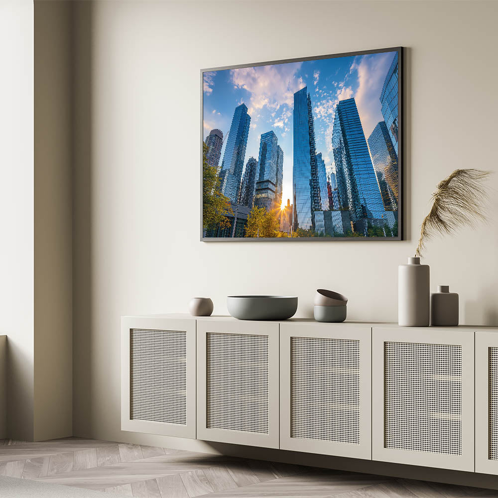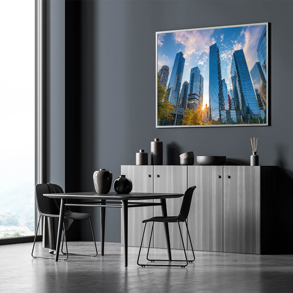 Transform your living space with this modern Boston skyline wall art, capturing the sleek, glass-covered towers of the city's downtown area as they rise against a vibrant blue sky. This artwork beautifully portrays the contemporary architecture of Boston, reflecting both the city’s dynamic energy and its forward-looking spirit. Ideal for anyone who appreciates urban landscapes, this piece is perfect for adding a touch of modern elegance to your home or office.