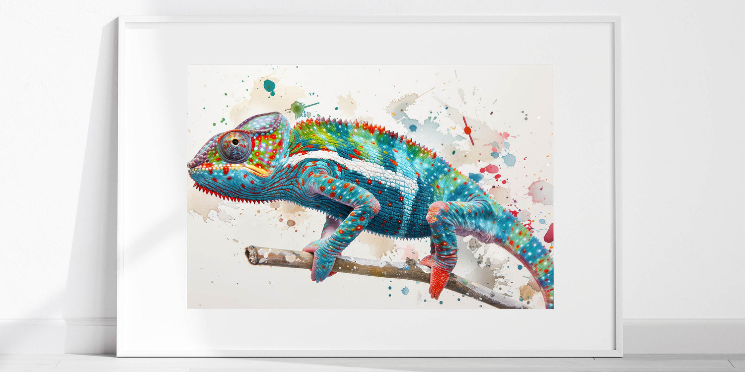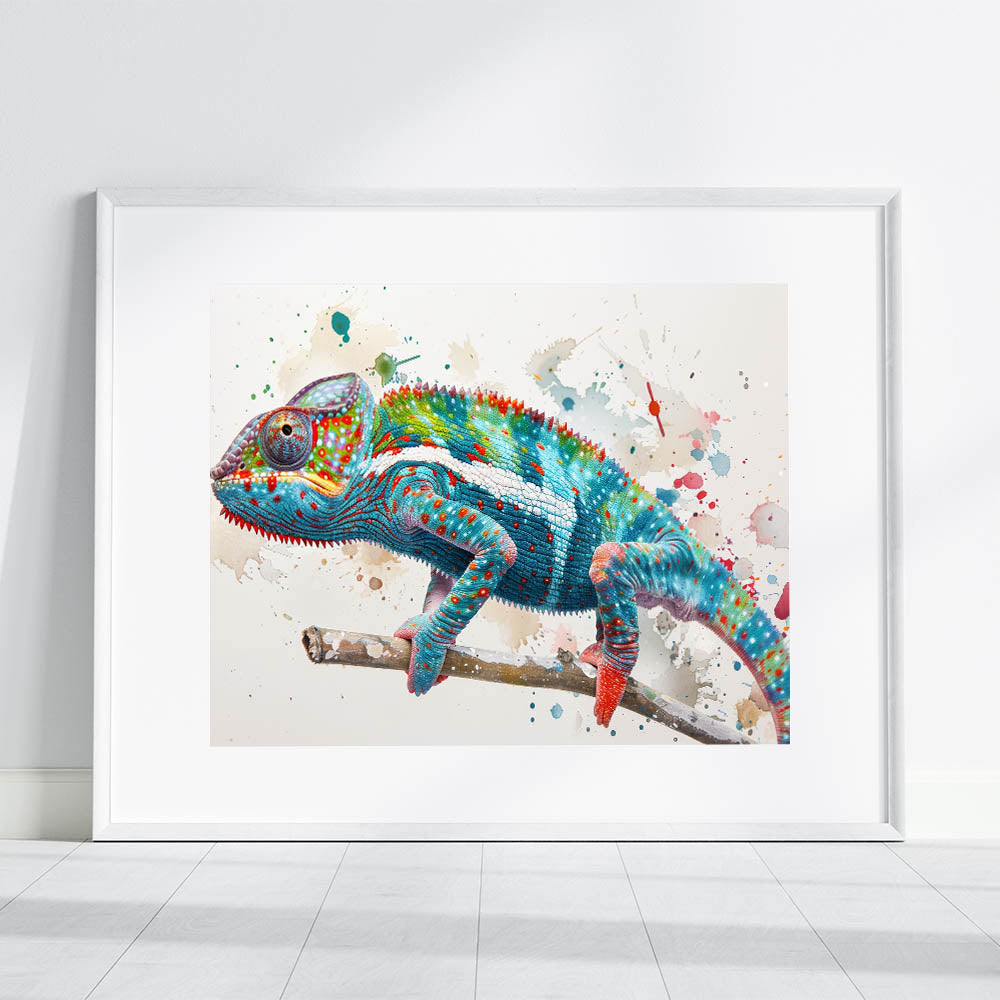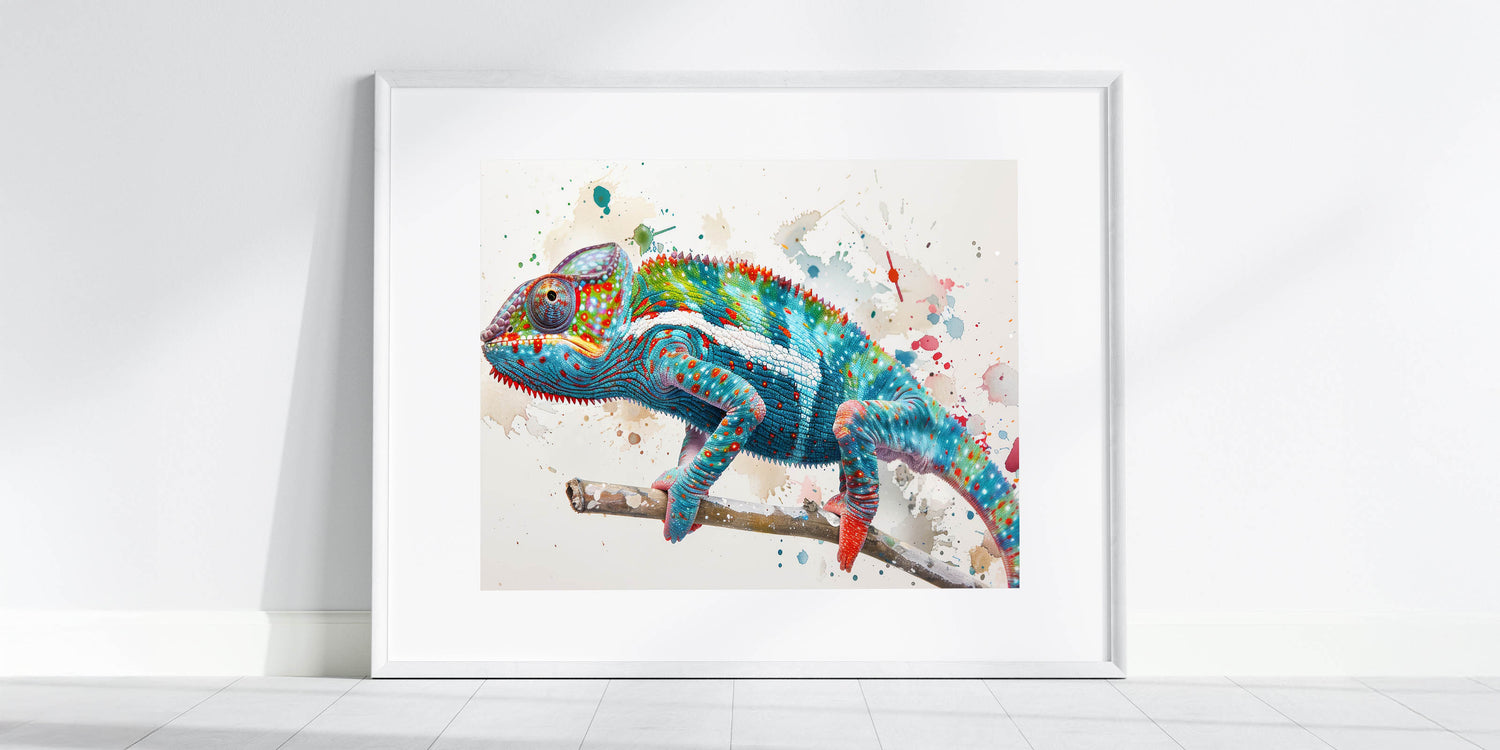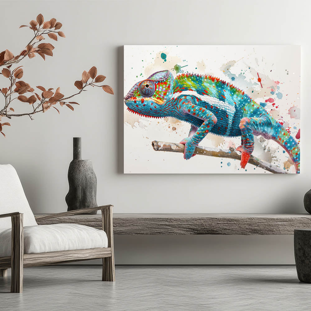 Elevate your home decor with this abstract chameleon wall art that bursts with color and energy. This piece captures the beauty of a chameleon in vivid detail, set against an expressive, paint-splattered background that adds a modern, artistic touch to any room. Perfect for those who appreciate bold, colorful designs and unique reptile-themed decor, this artwork will surely become a conversation starter.