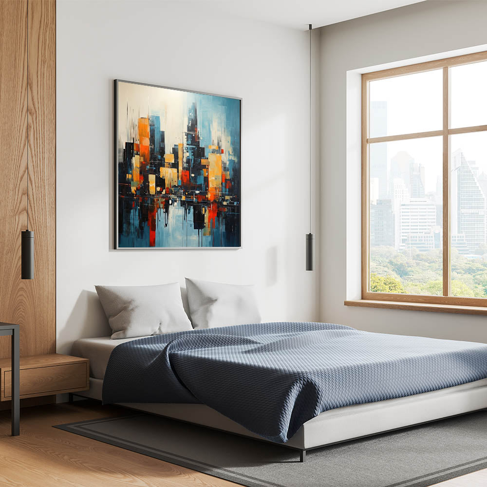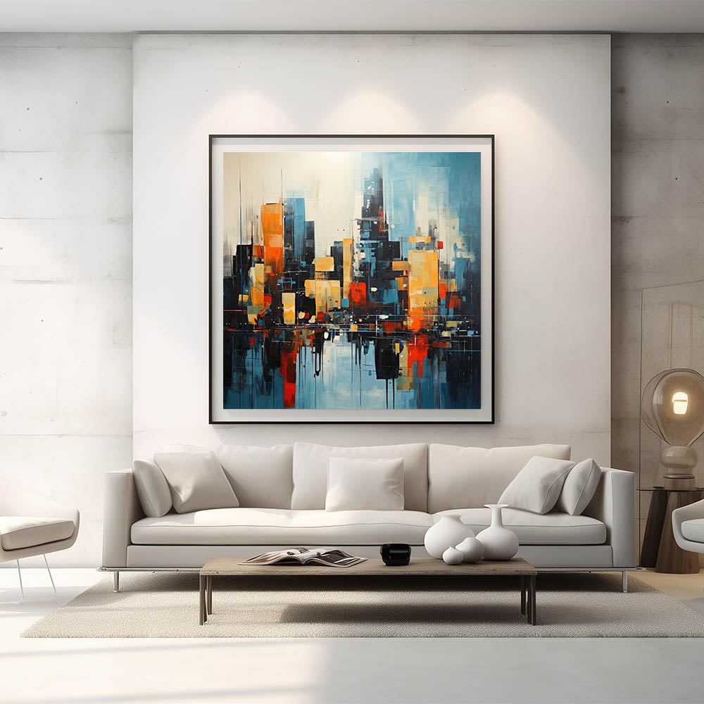 Whether you’re decorating a living room, office, or bedroom, this abstract cityscape offers a fresh take on the New York skyline. The vibrant mix of colors and forms brings a sense of movement and energy to any space.