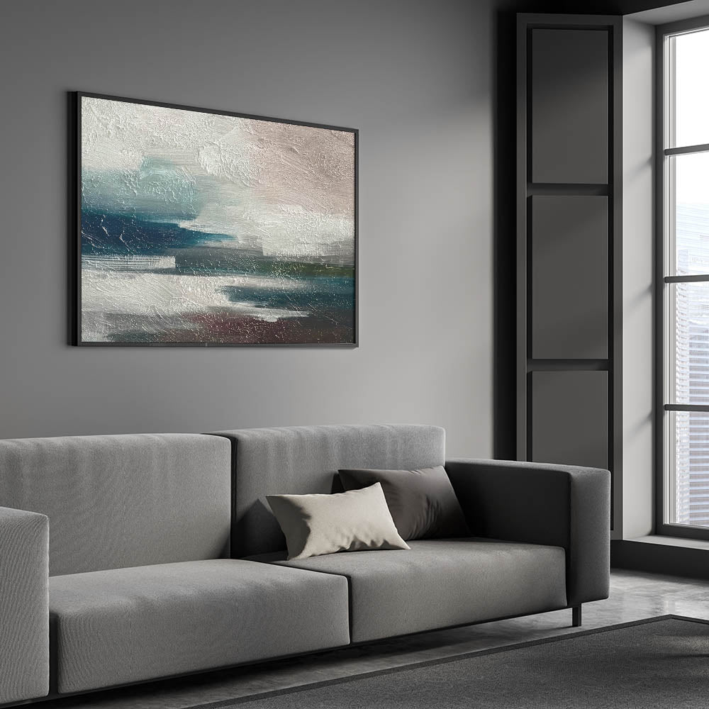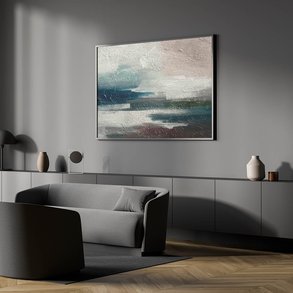 Transform your living space with the serene beauty of this "Abstract Ocean Breeze Canvas," featuring a calming blend of blue, white, and subtle green hues. This textured artwork captures the essence of a tranquil coastal scene, where the abstract brush strokes evoke the movement of waves and the gentle flow of the ocean breeze. The intricate texture adds depth and dimension, making this piece a perfect focal point for any room.