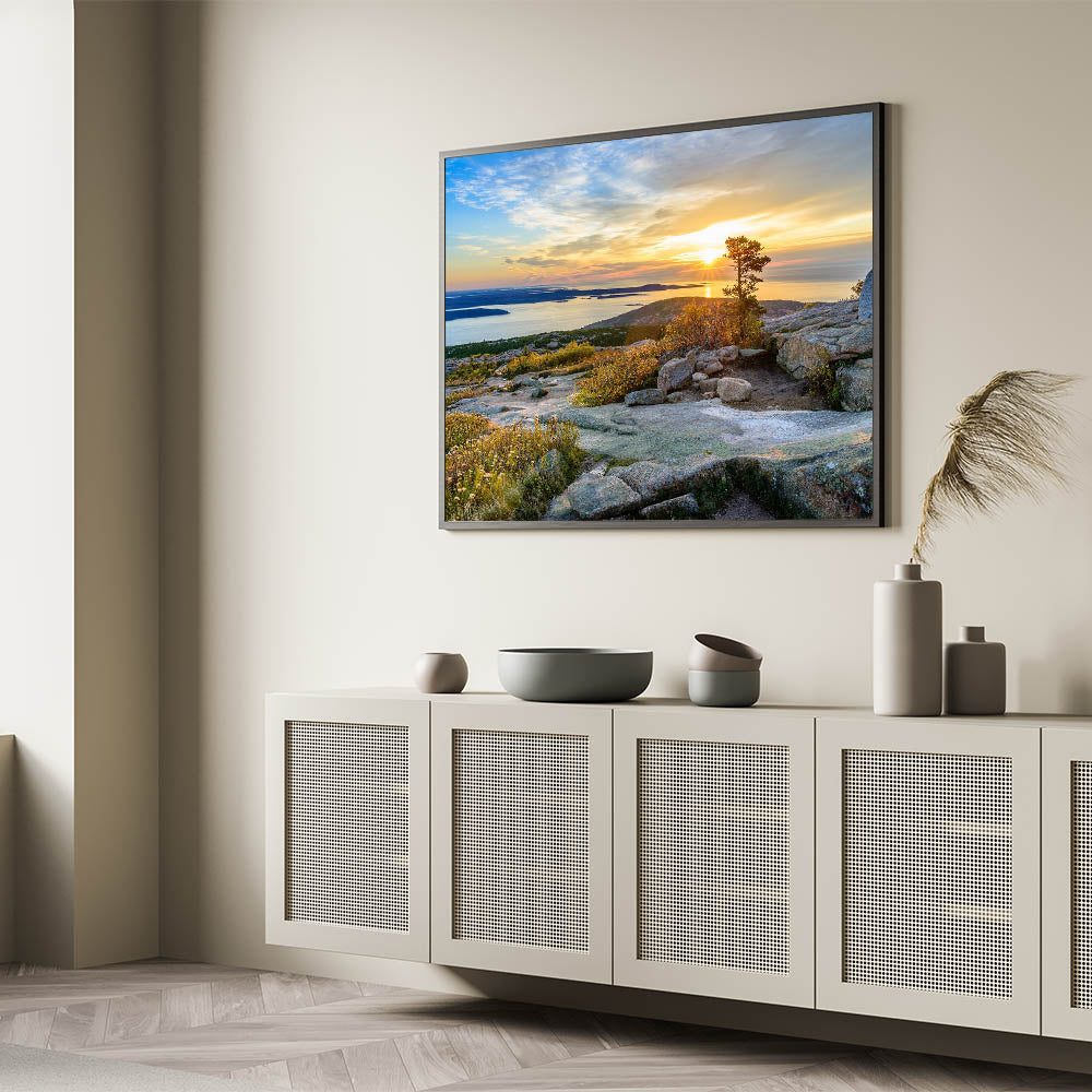 Transform your space with this beautiful Acadia National Park print and enjoy the serene scenery of coastal Maine every day. Whether you choose a canvas print, framed poster, or acrylic glass, this artwork will enhance any room's ambiance, creating a peaceful, nature-inspired atmosphere.