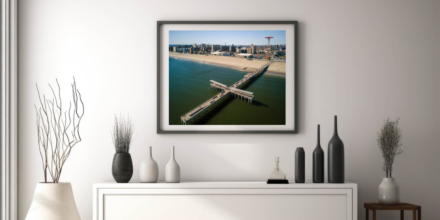 Aerial Coney Island Pier View - New York Beach Scenic Photography Art