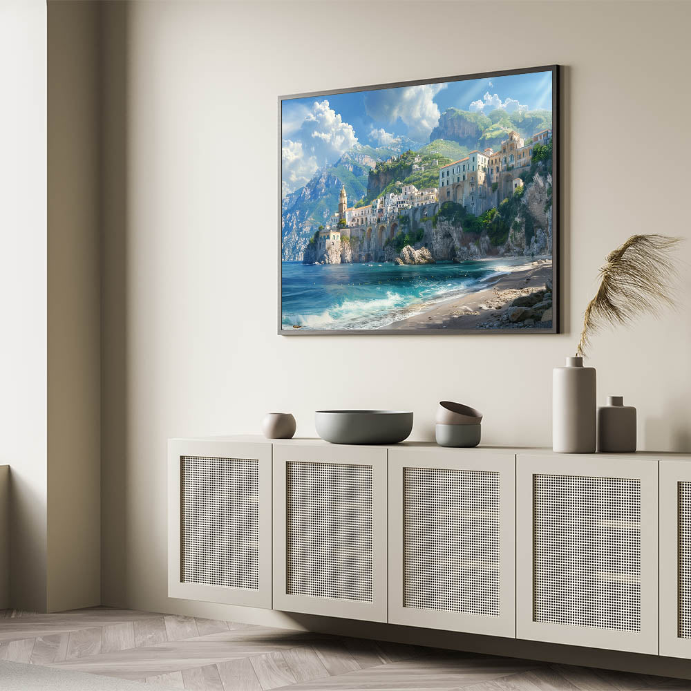 This artwork from our Amalfi Coast art collection brings the timeless charm of the Italian coastline into your home. Perfect for lovers of scenic Italian coastline decor, this piece will elevate any room with its serene beauty and captivating details.