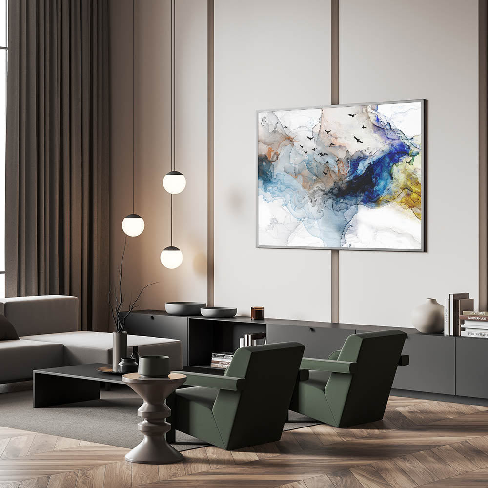 - Graceful Design: Features a harmonious blend of abstract strokes and fluid lines, with birds adding a dynamic and tranquil touch.