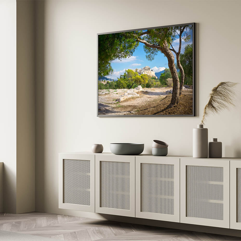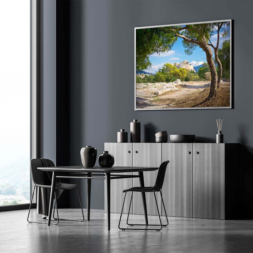 This striking artwork blends nature and history, creating a peaceful ambiance that reminds you of the glory of Athens. Whether placed in your living room, study, or office, this piece brings a cultural depth that enriches any space.