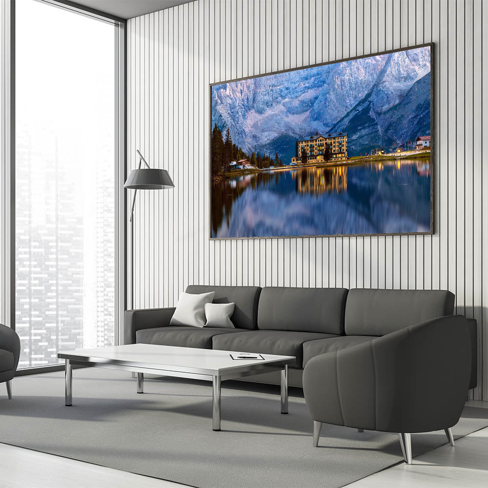 - Art Style: Austrian landscape art featuring an alpine hotel and mountain reflections