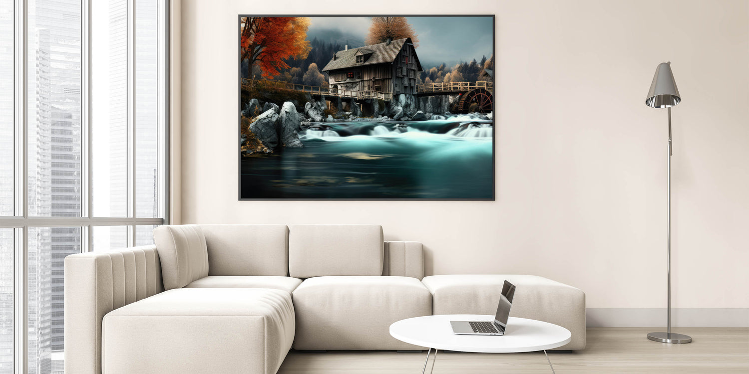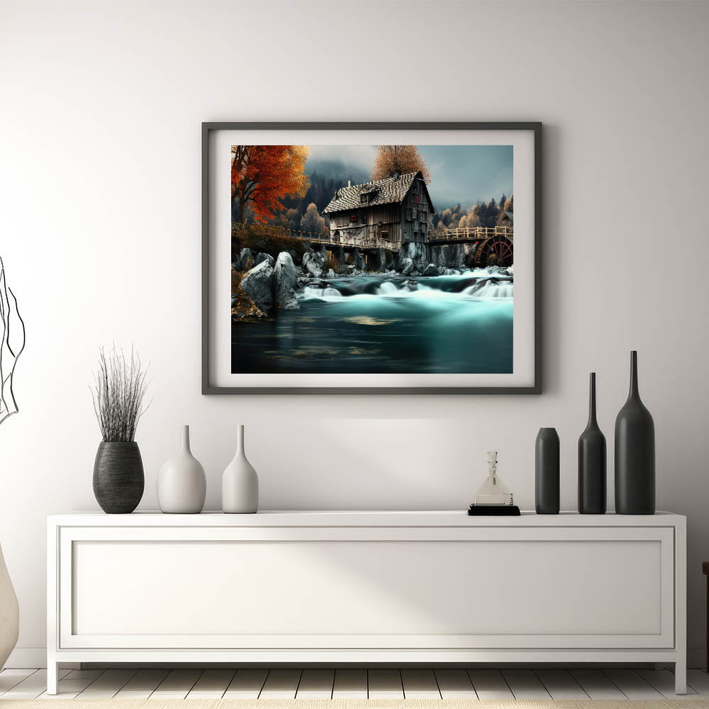 Bring the breathtaking beauty of autumn into your home with this striking watermill print. Whether you’re looking to enhance a contemporary space or add warmth to a traditional decor, this artwork is sure to be a focal point in any room. Explore our collection for more scenic watermill art that complements your style.