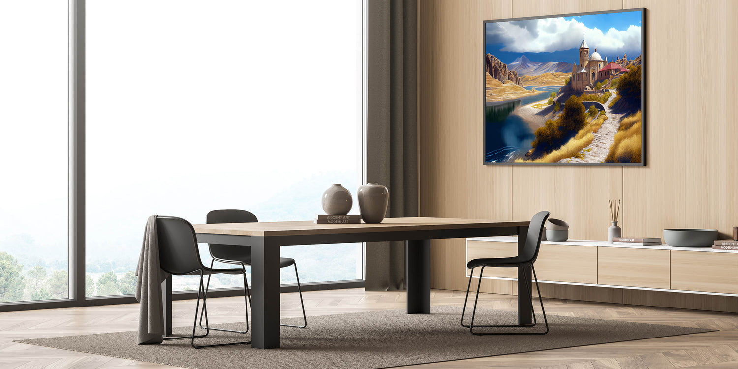 Enhance your home with this stunning representation of Azerbaijan’s serene landscapes. This piece is perfect for those who seek a peaceful and reflective addition to their decor.