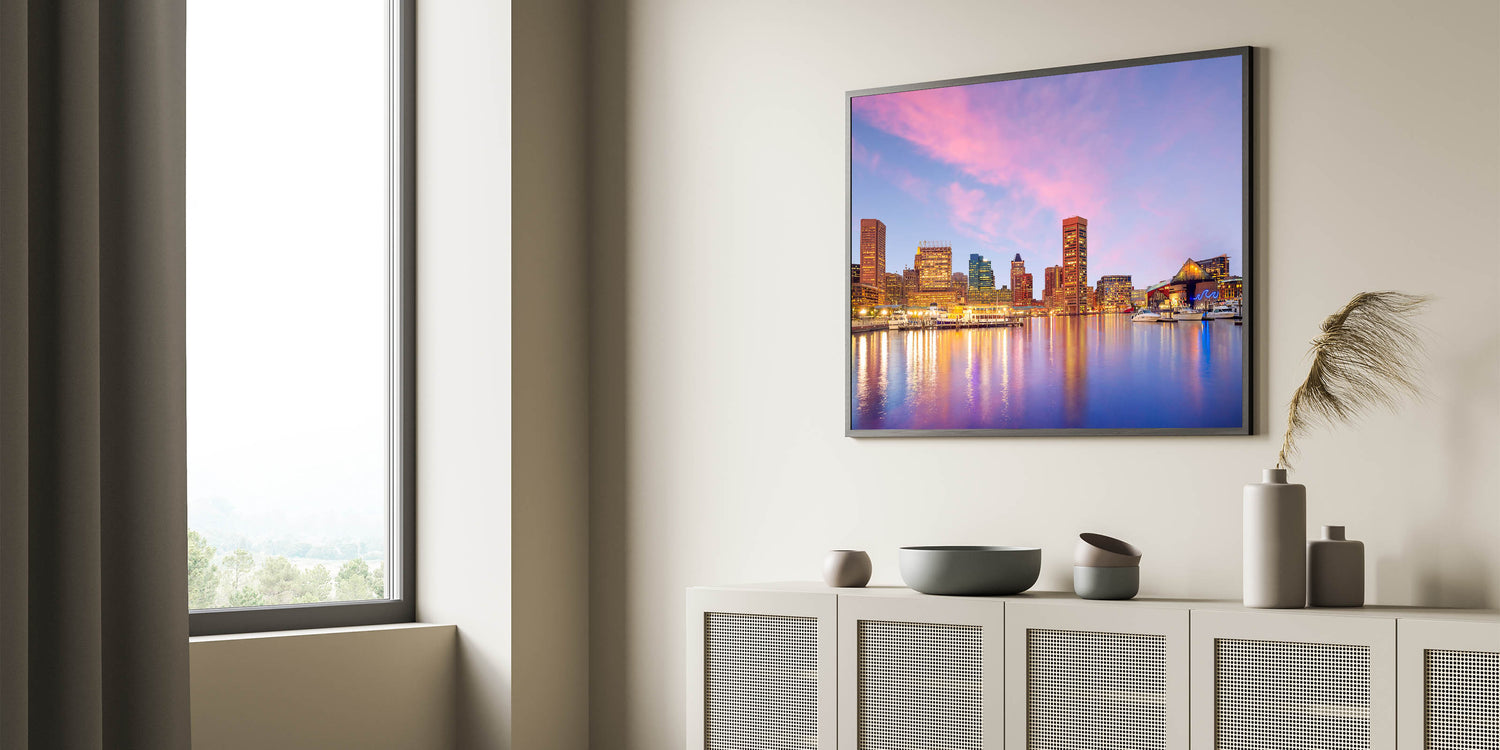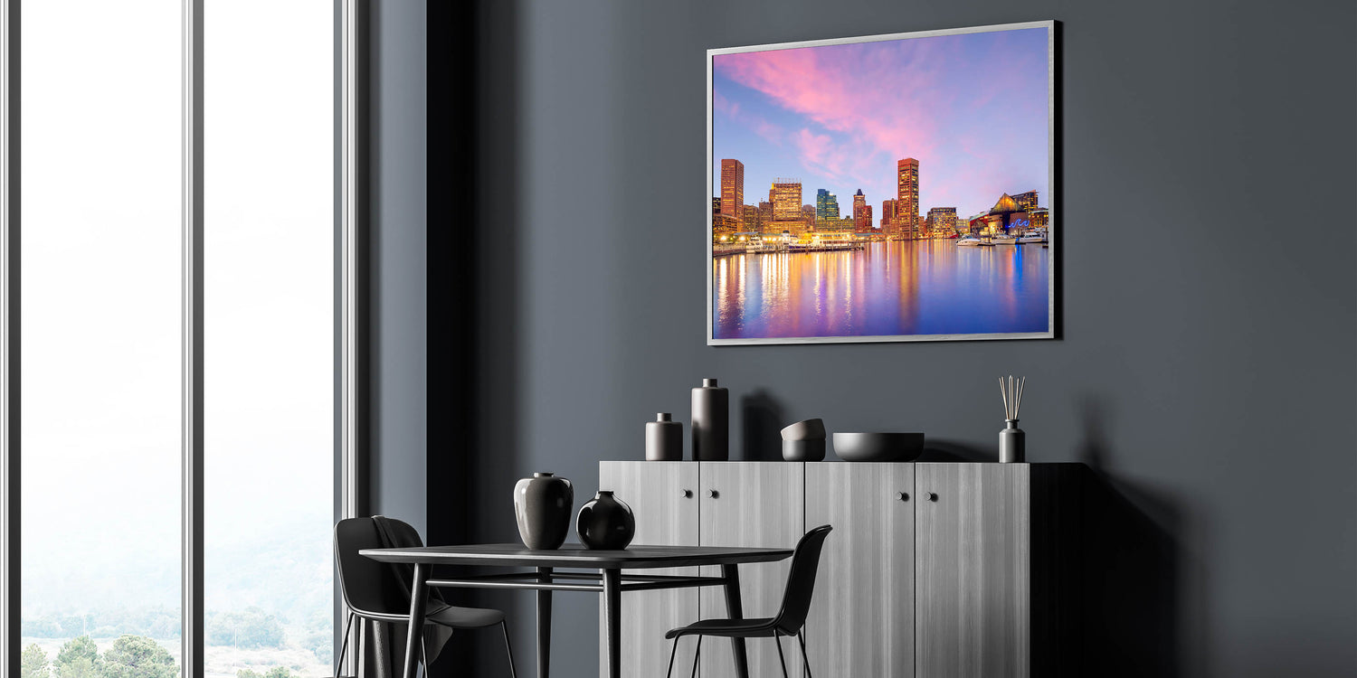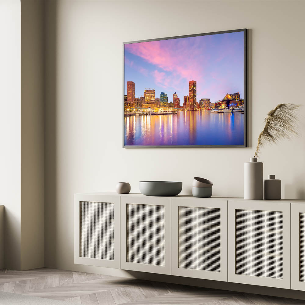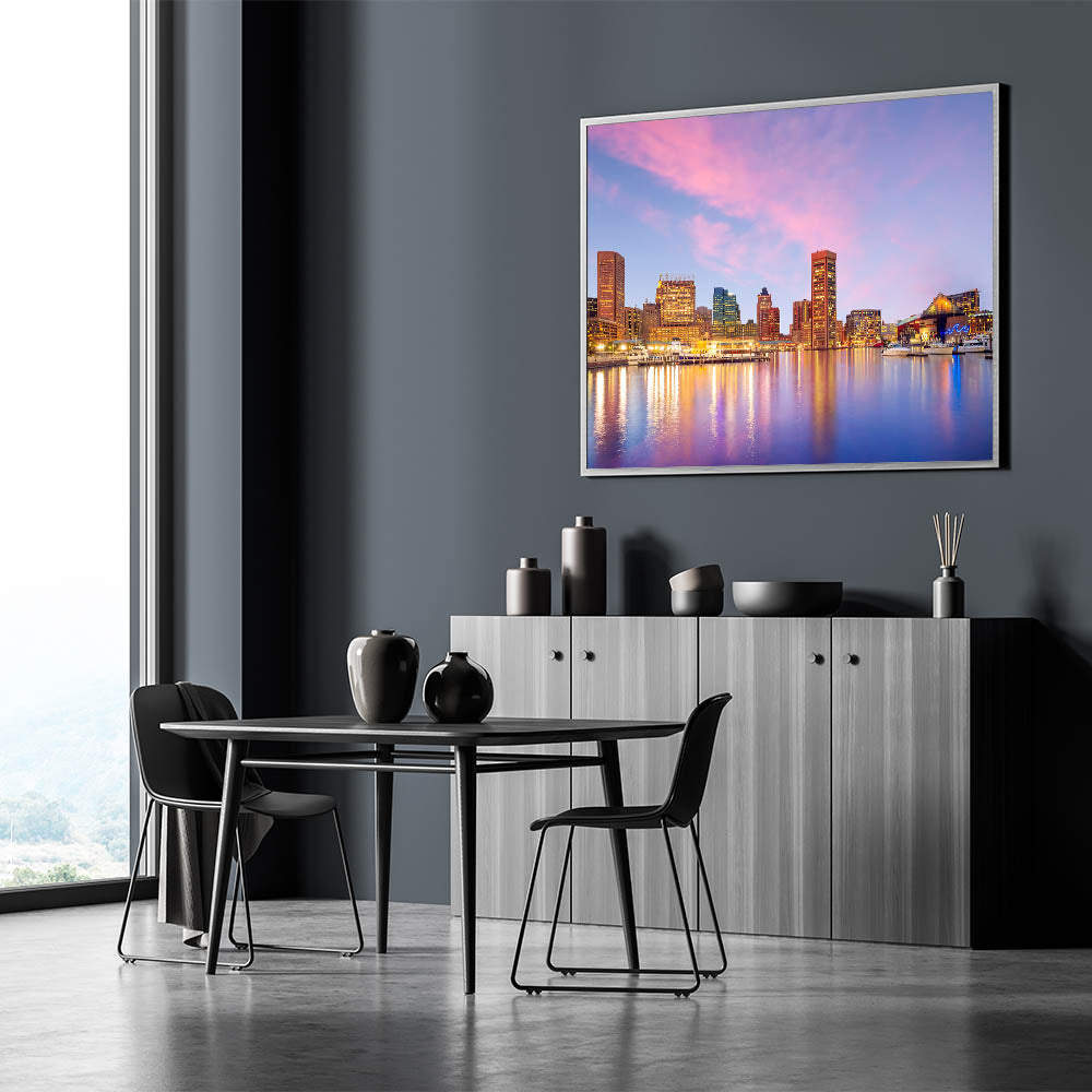 • Stunning detail and color reproduction of the Baltimore skyline and harbor at sunset.