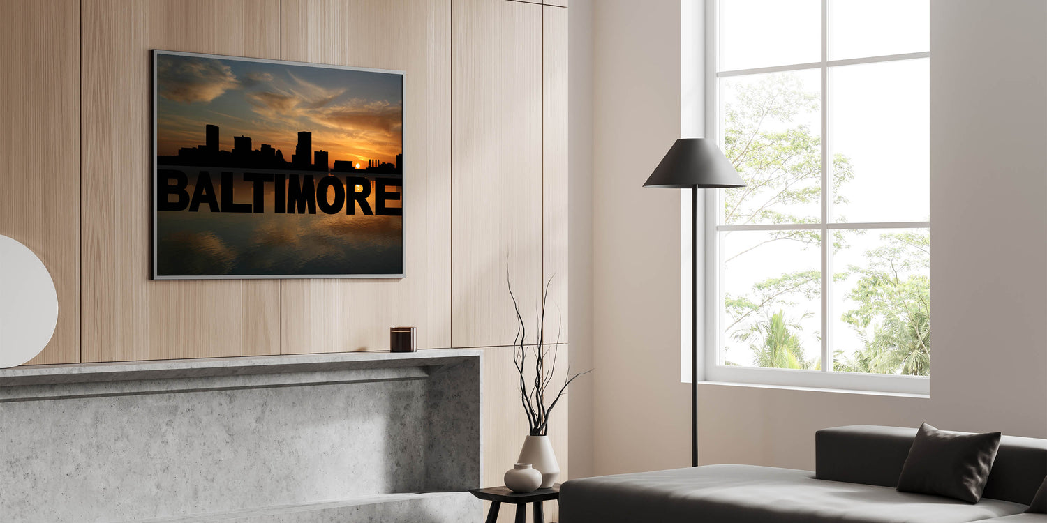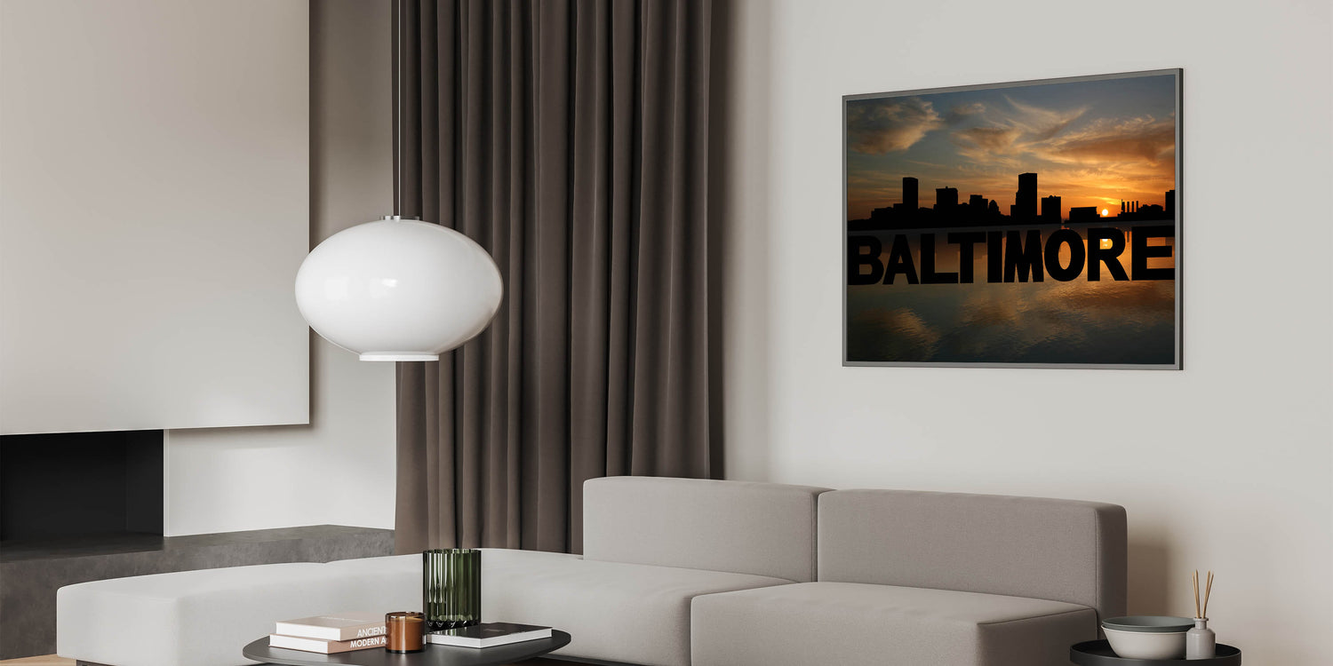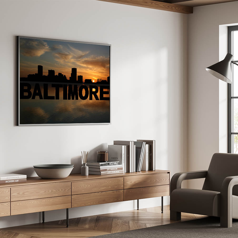 Capture the beauty of the city with this stunning Baltimore Wall Art Collection piece, showcasing a mesmerizing sunset over the Baltimore skyline. The silhouette of the city against the vibrant, warm sky creates an unforgettable scene that any art lover will appreciate. This Baltimore Skyline Canvas is perfect for anyone looking to enhance their space with a touch of Baltimore’s scenic artwork.