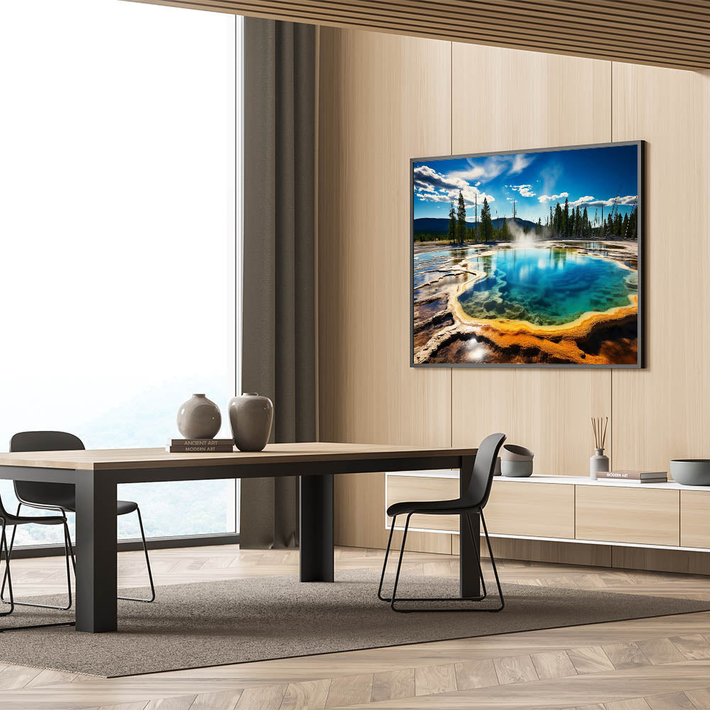 This Yellowstone scenic art showcases the breathtaking natural beauty of Yellowstone's geothermal springs, making it a perfect addition to your home, office, or living space. Enhance your decor with this piece that captures the peaceful essence of one of America’s greatest natural wonders.