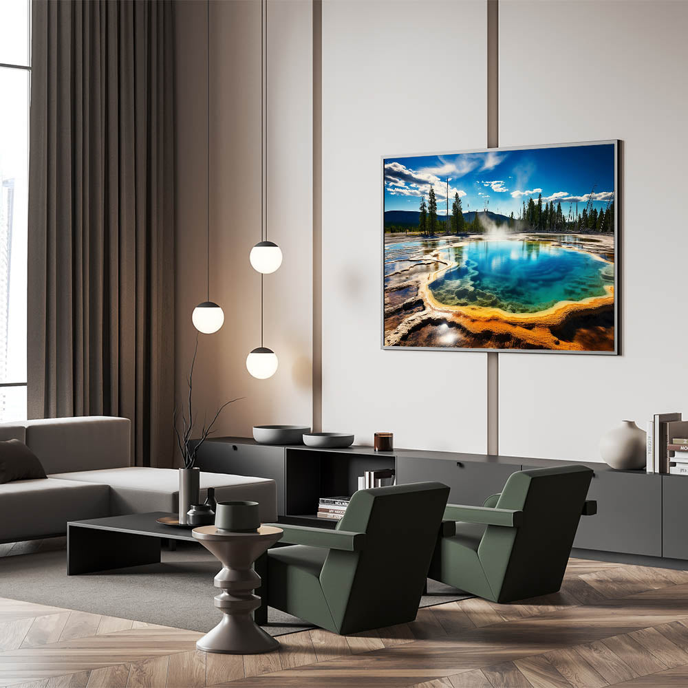 - Ideal for nature lovers, those seeking calm and serene wall decor, or fans of Yellowstone's geothermal features.