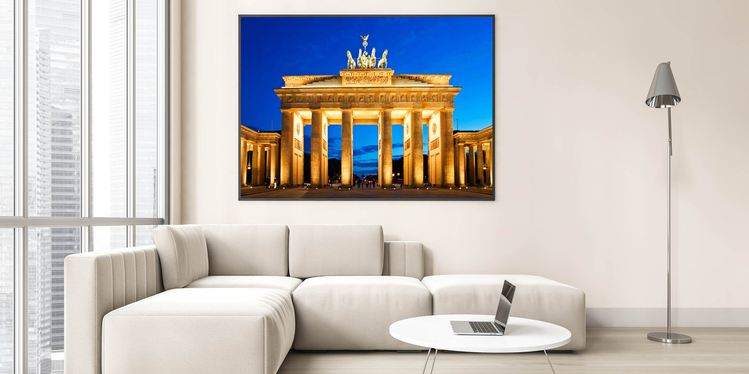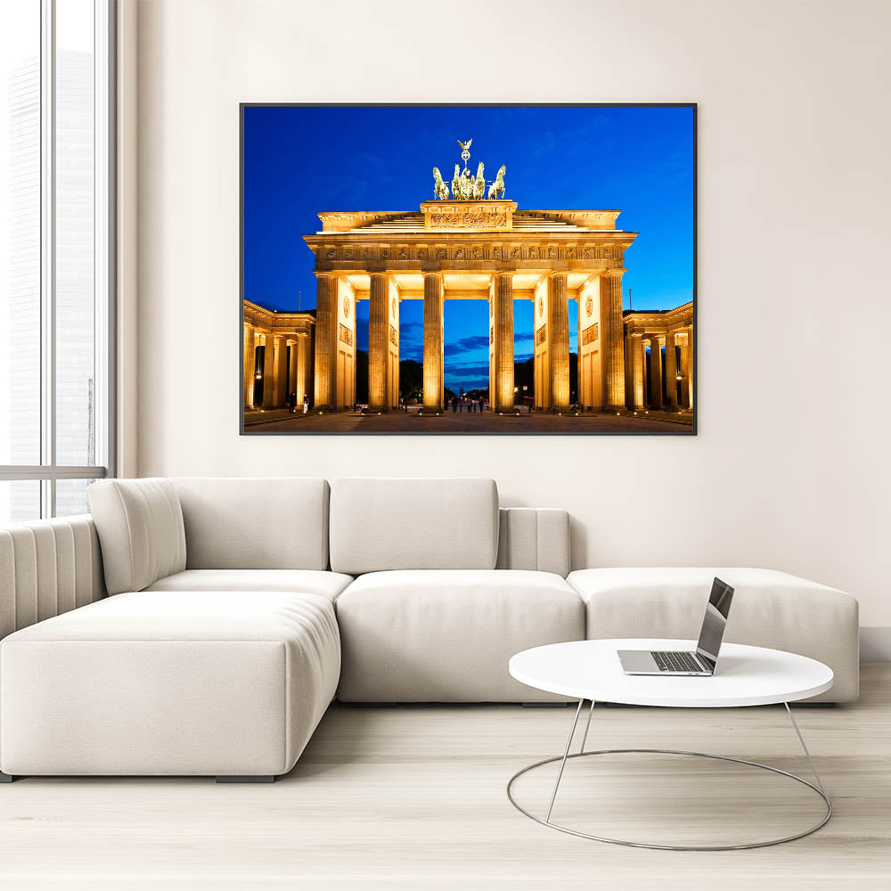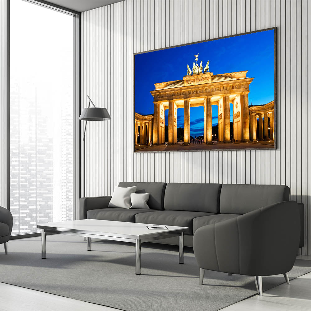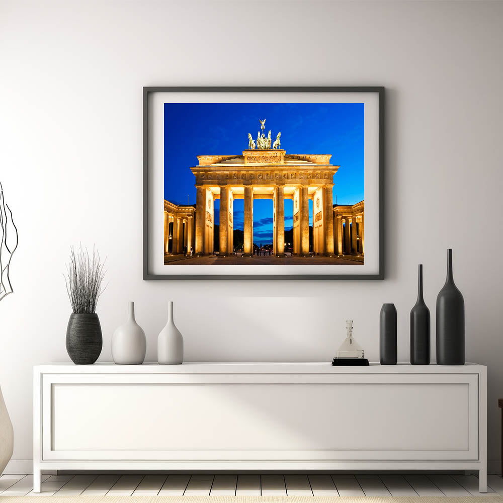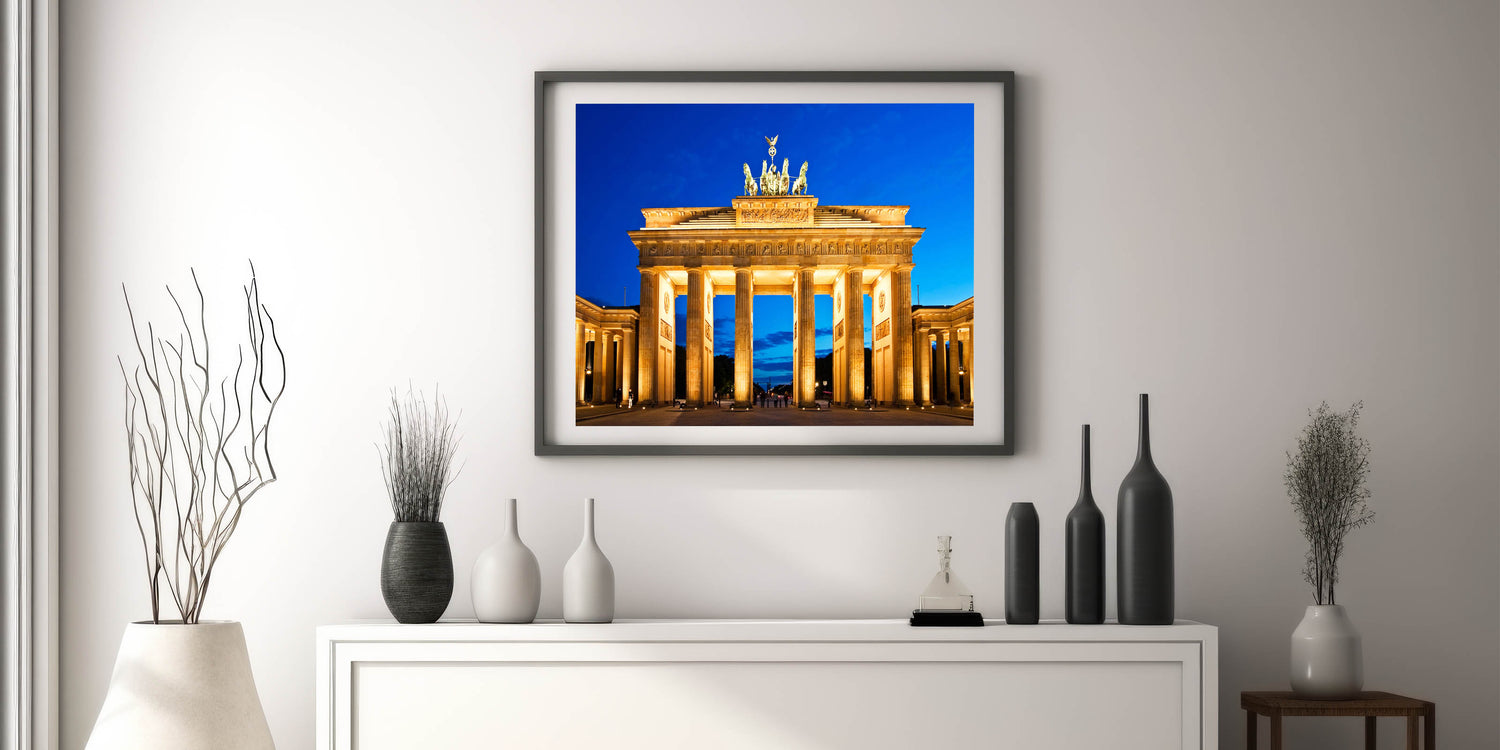 - Berlin-Inspired Art: Features the majestic Brandenburg Gate under a clear evening sky, showcasing the city's timeless charm.