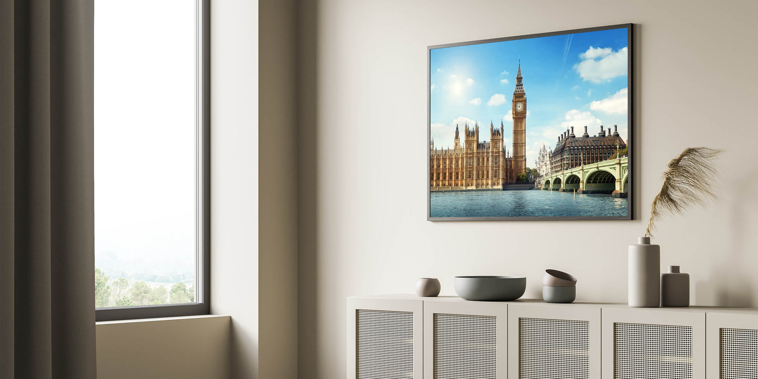 Capture the beauty of London’s most famous landmark with this stunning Big Ben wall art. This daylight view of the iconic Westminster Clock Tower against a clear blue sky offers a breathtaking perspective of London's historic architecture. Perfect for adding a touch of elegance to your home or office, this artwork celebrates the grandeur of one of the world's most recognizable landmarks.