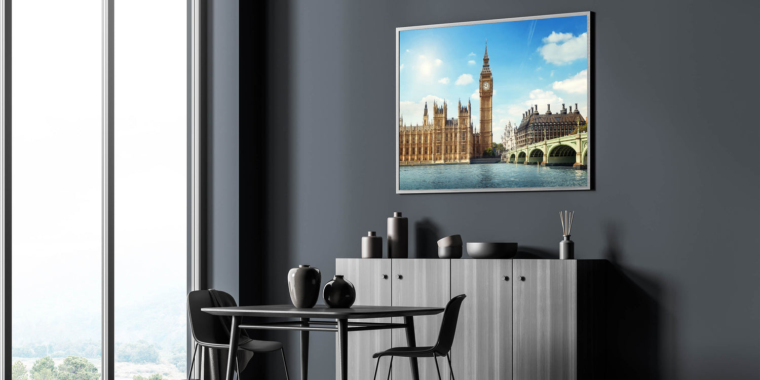 Whether you're a fan of London’s famous landmarks or looking for the perfect piece of decor, this Big Ben wall art makes a statement. Its crisp details and vibrant colors will bring the charm of London into any space.