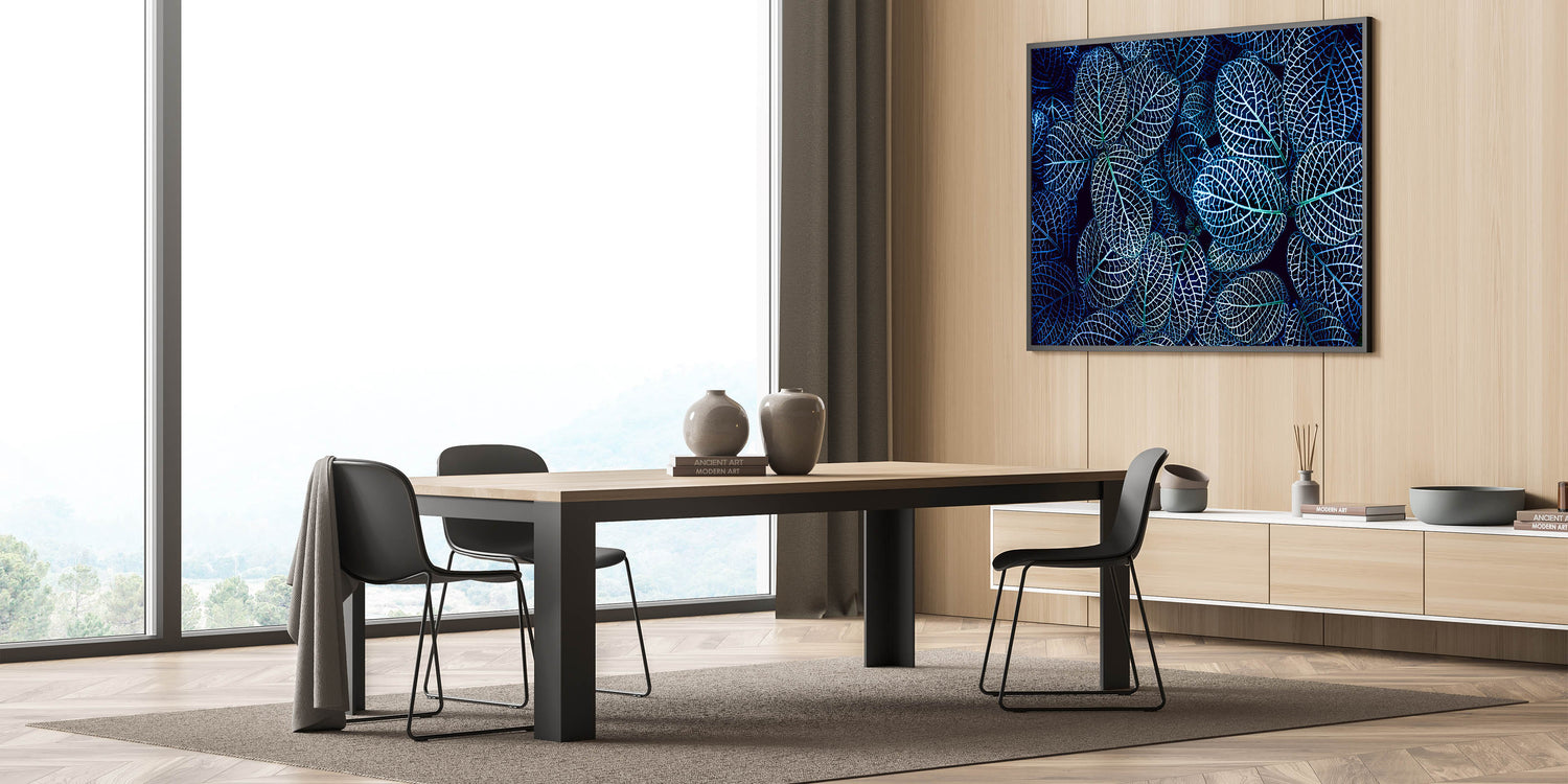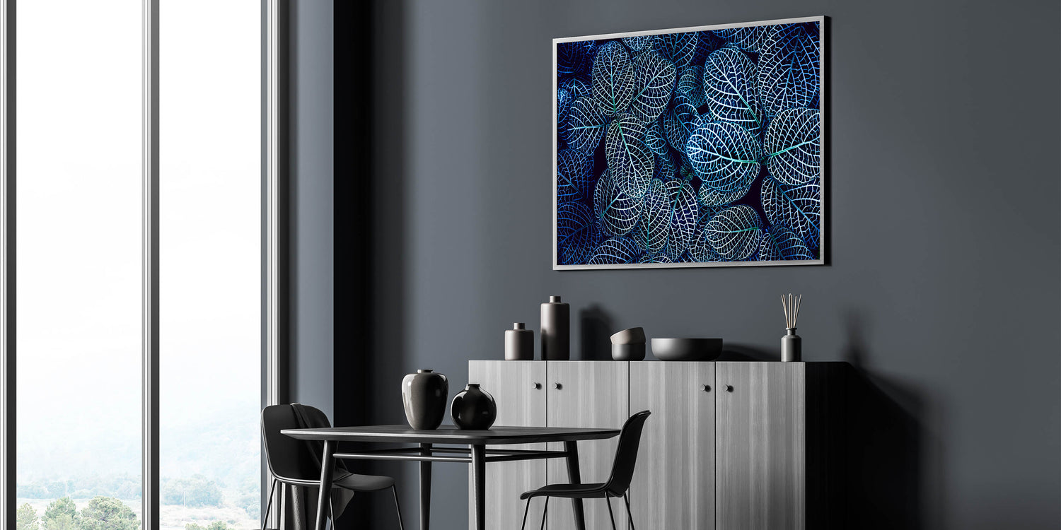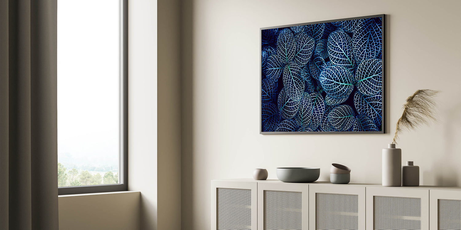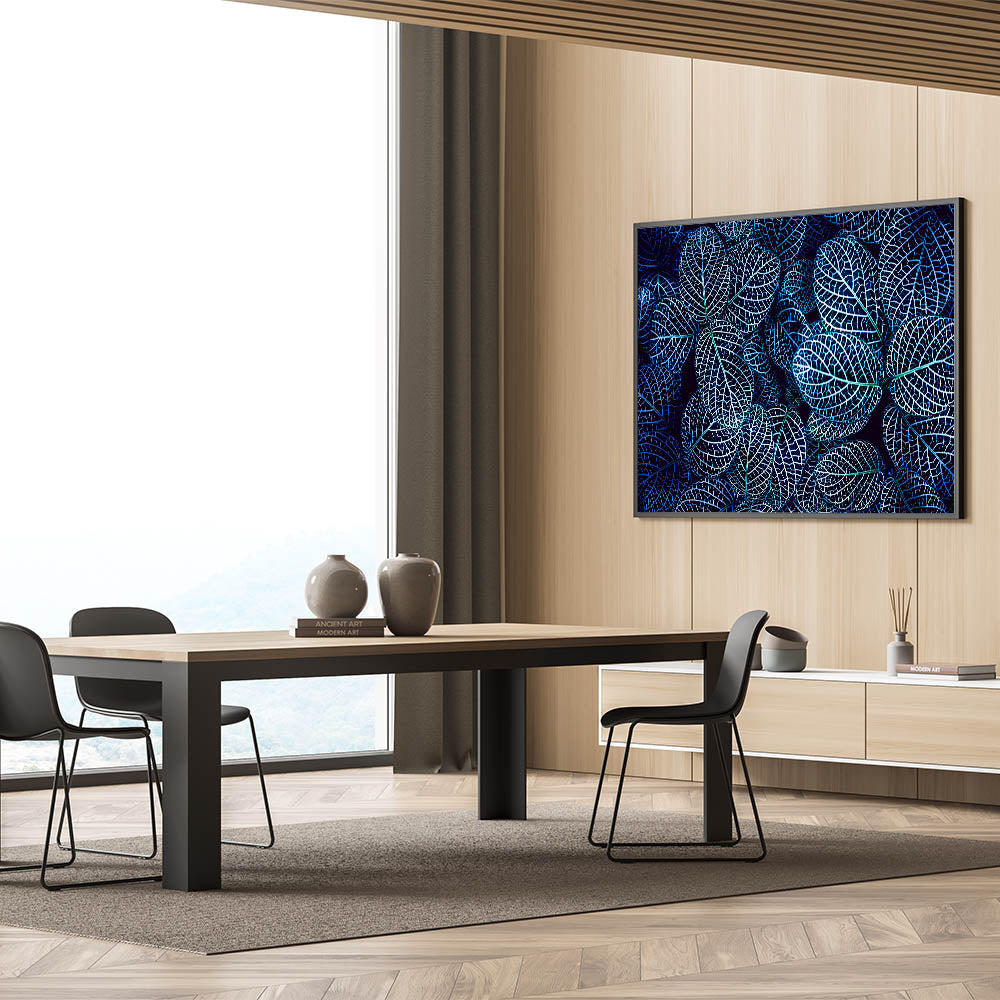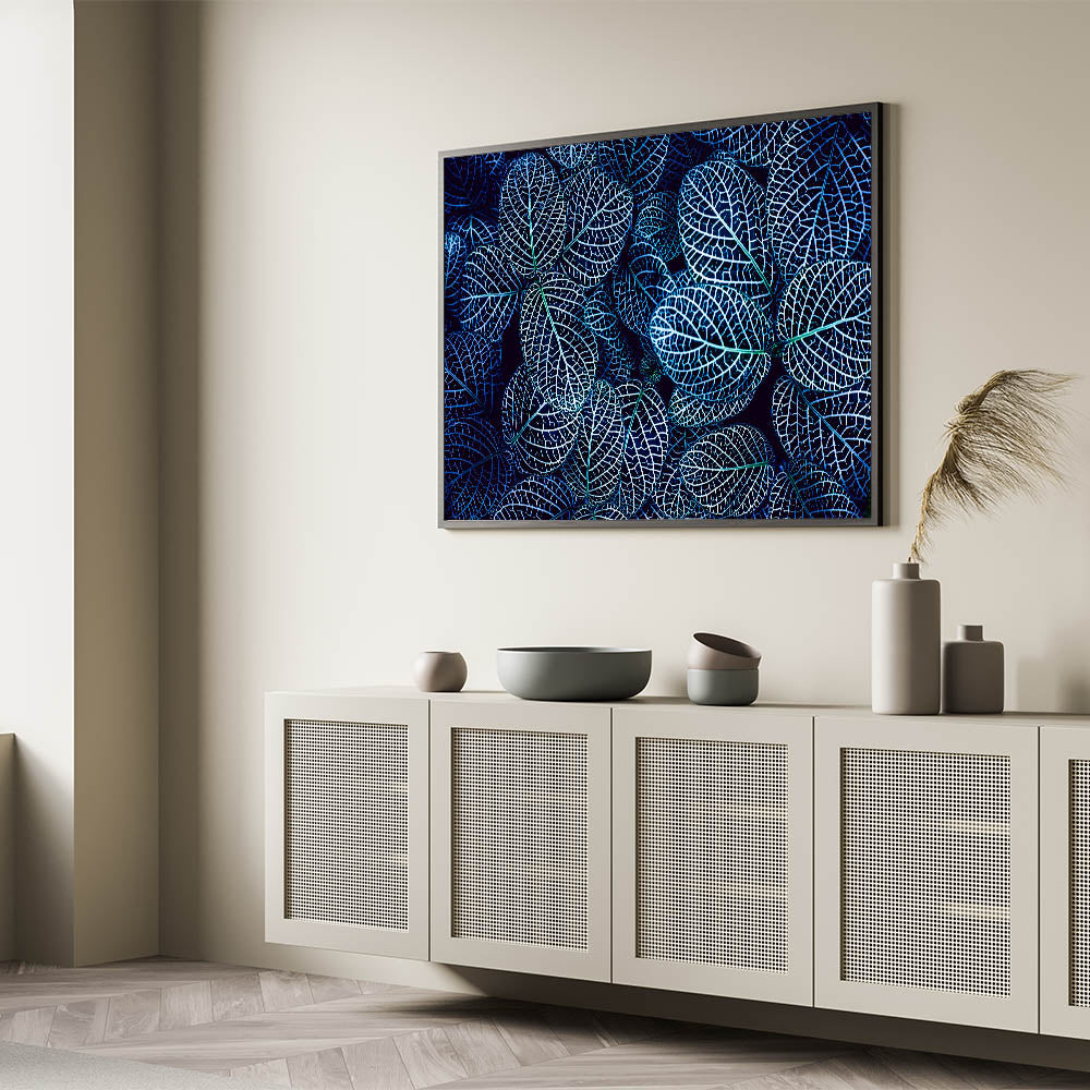 Blue Leaf Photography Art: Nature-Inspired Wall Decor for Modern Homes