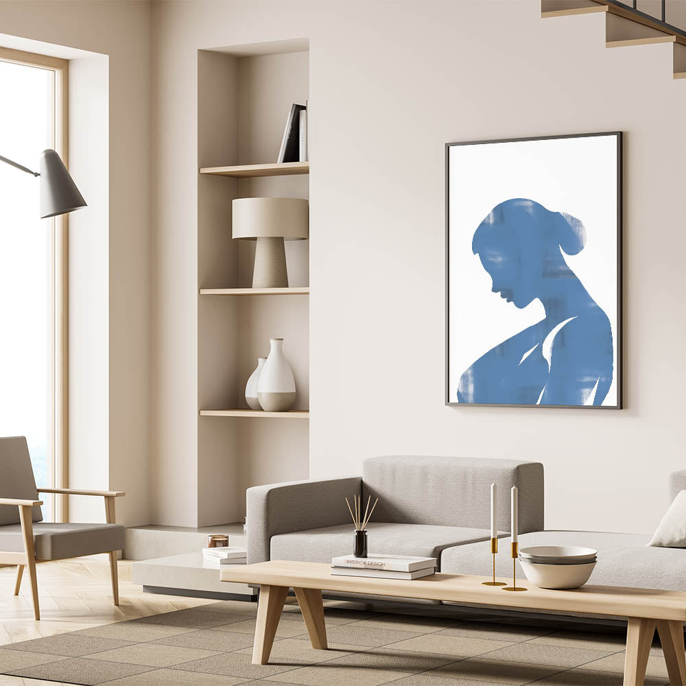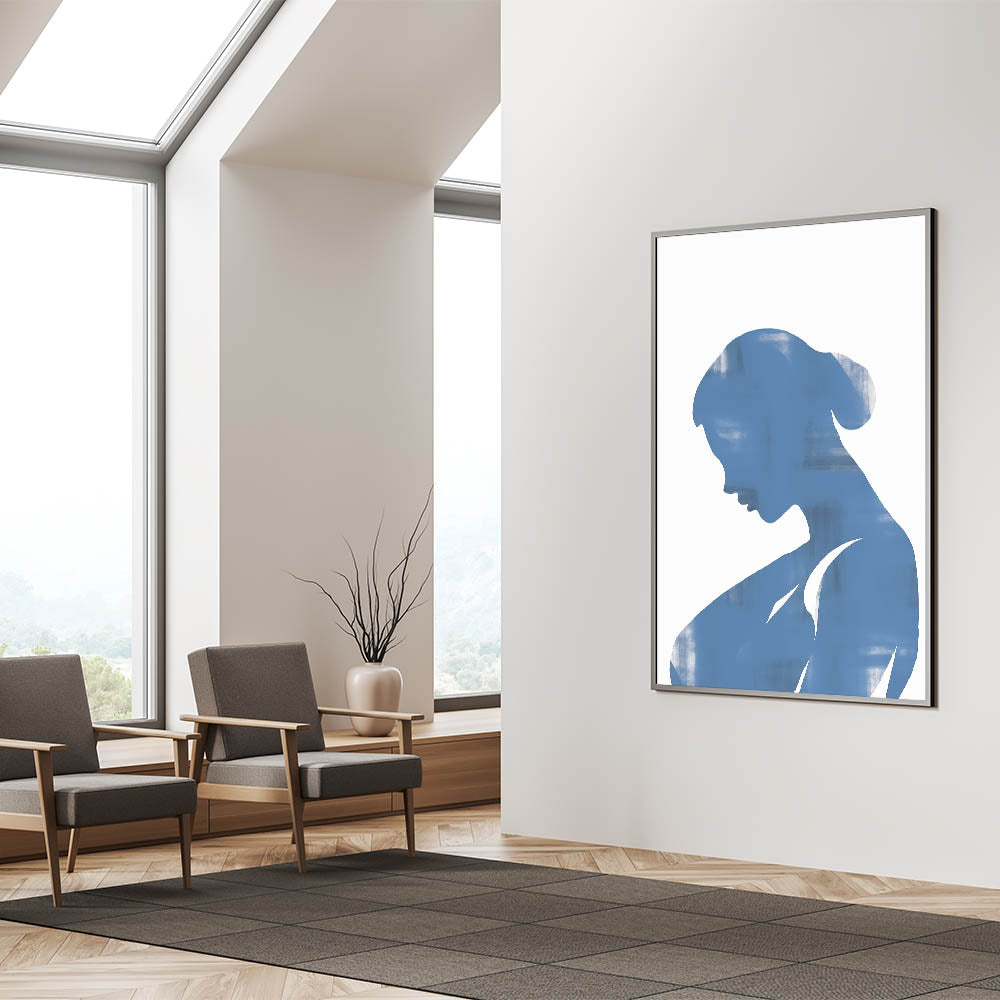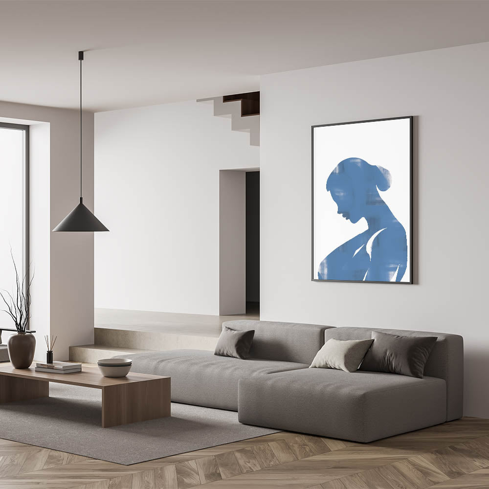Introducing our Blue Silhouette Minimalist Art, a striking piece that embodies simplicity and contemporary design. This abstract artwork features a serene blue silhouette on a neutral background, creating a captivating visual effect perfect for modern interiors.