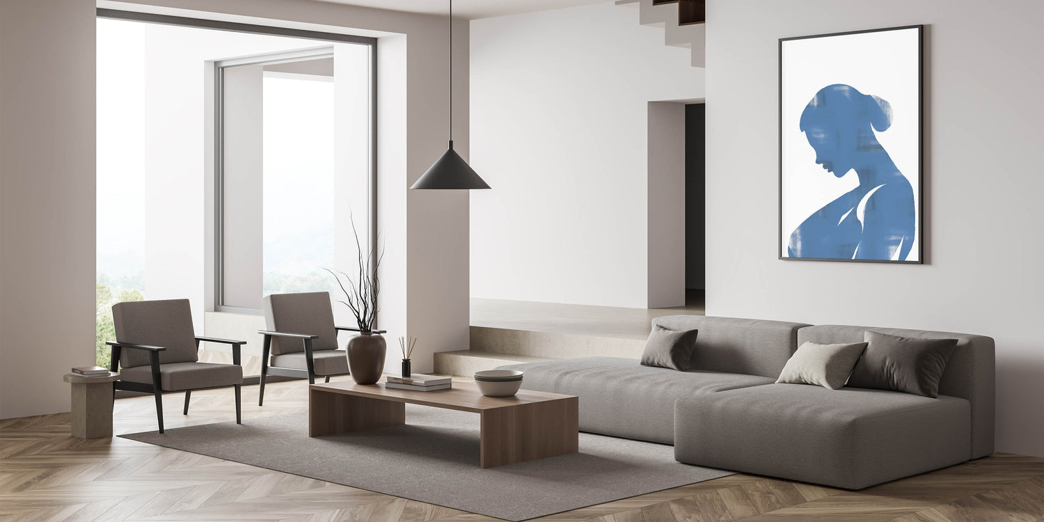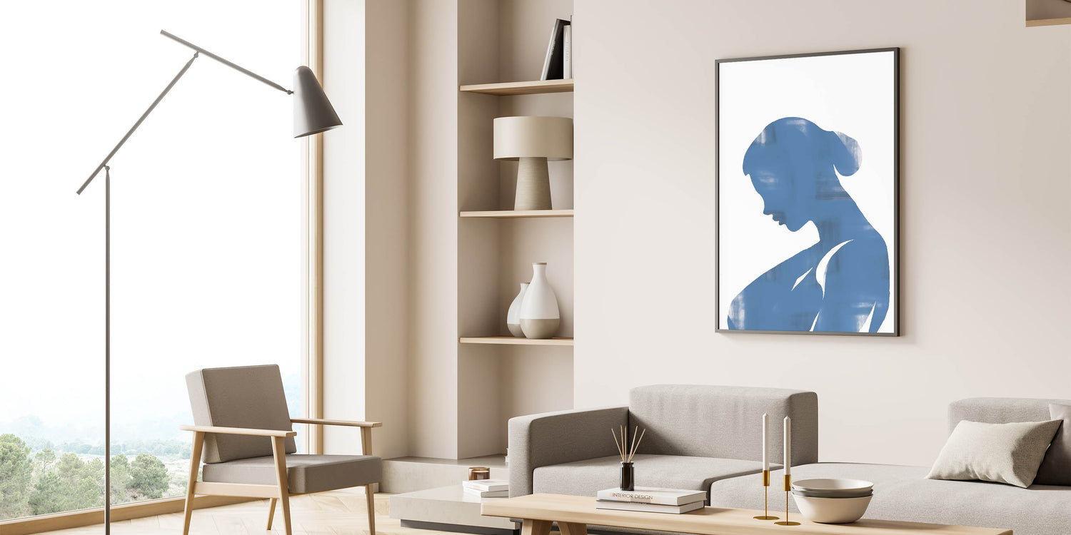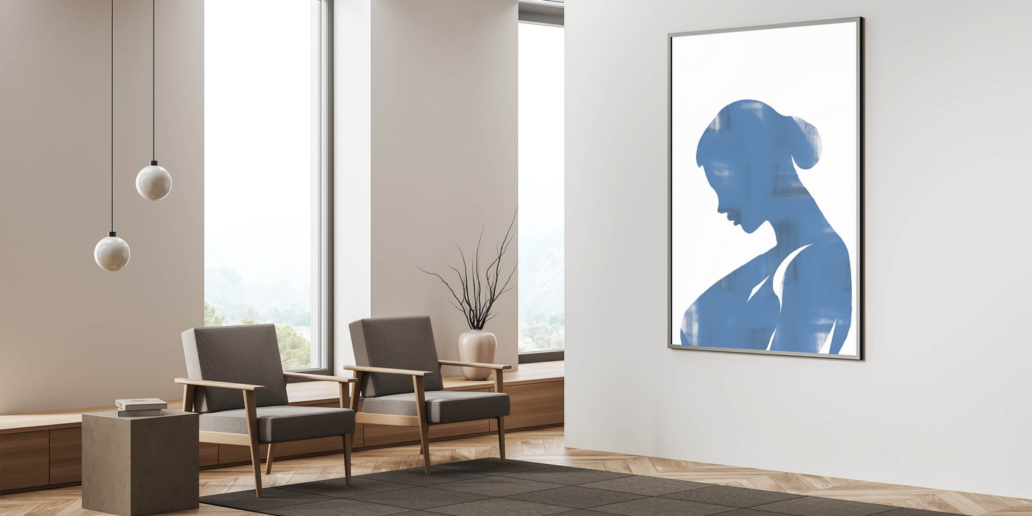 Introducing our Blue Silhouette Minimalist Art, a striking piece that embodies simplicity and contemporary design. This abstract artwork features a serene blue silhouette on a neutral background, creating a captivating visual effect perfect for modern interiors.