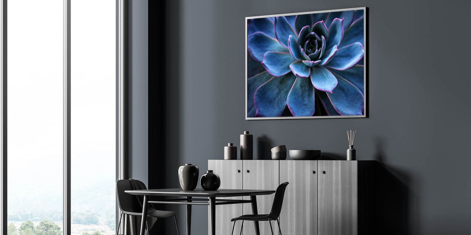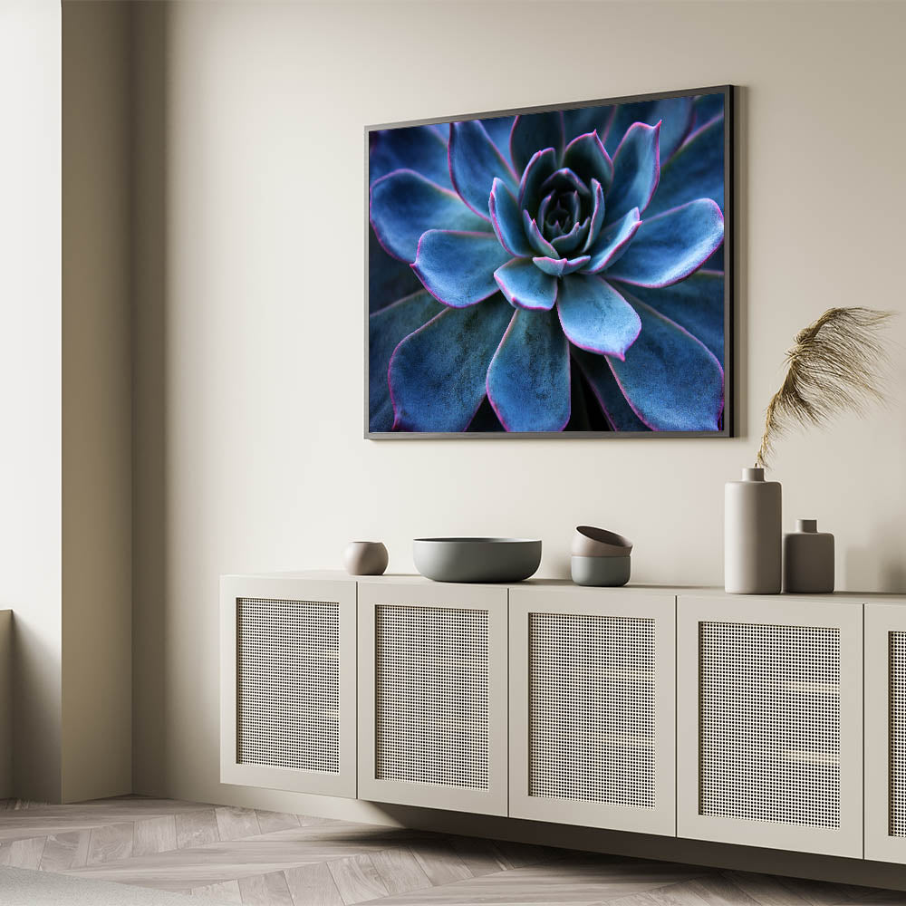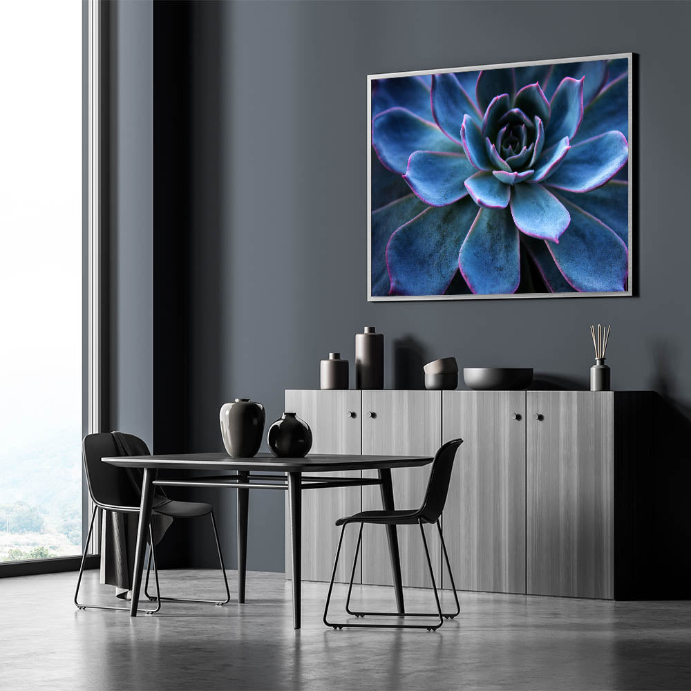 Blue Succulent Wall Art - Elegant Botanical Decor with Purple Accents