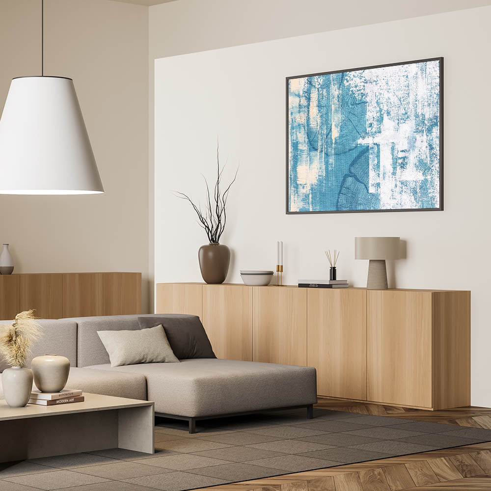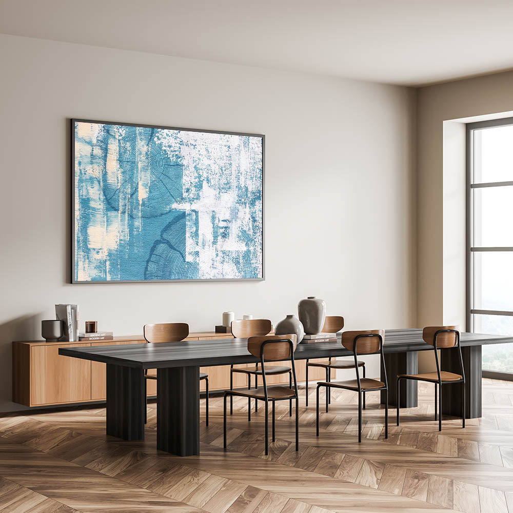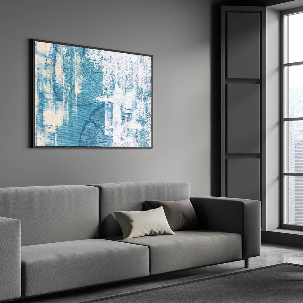 This abstract strokes and lines art piece is perfect for those who appreciate the blend of natural elements with contemporary design. Whether displayed in a coastal home or a modern urban setting, this artwork brings a sense of peace and elegance to any space.