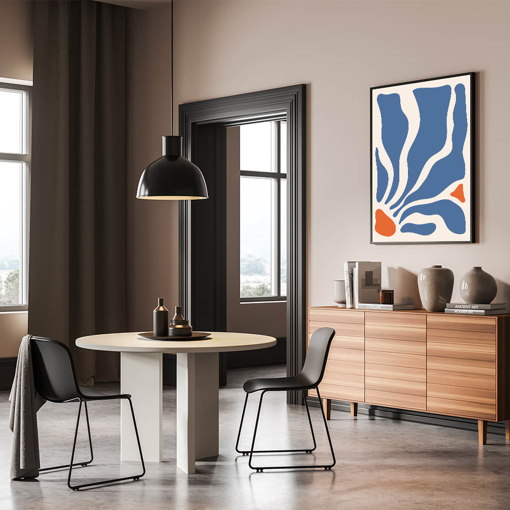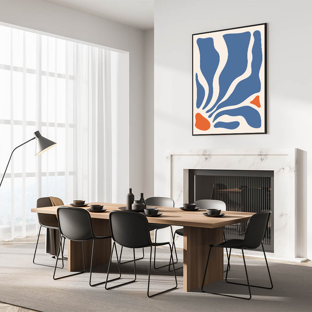 The dynamic contrast between the deep blue and vibrant orange creates an eye-catching piece of art that is both modern and expressive. Whether you’re decorating a cozy bedroom or creating a focal point in your living room, this boho wall art brings a unique and sophisticated touch to your space. Available in various formats, this artistic canvas complements a wide range of decor styles.