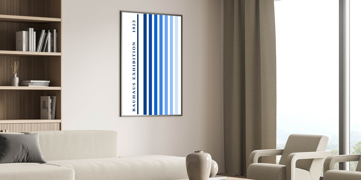 Bohemian Wall Art | Bauhaus Exhibition 1923 Boho Canvas | Blue Stripes