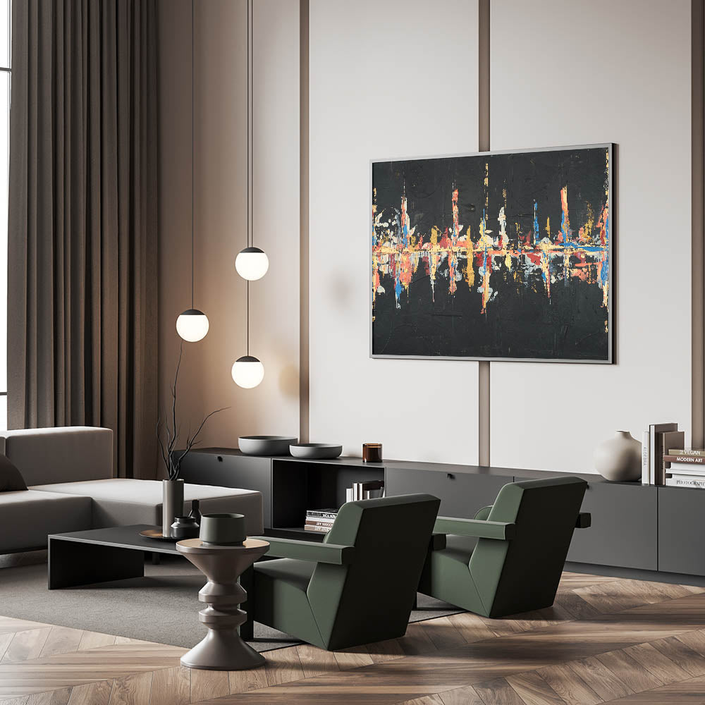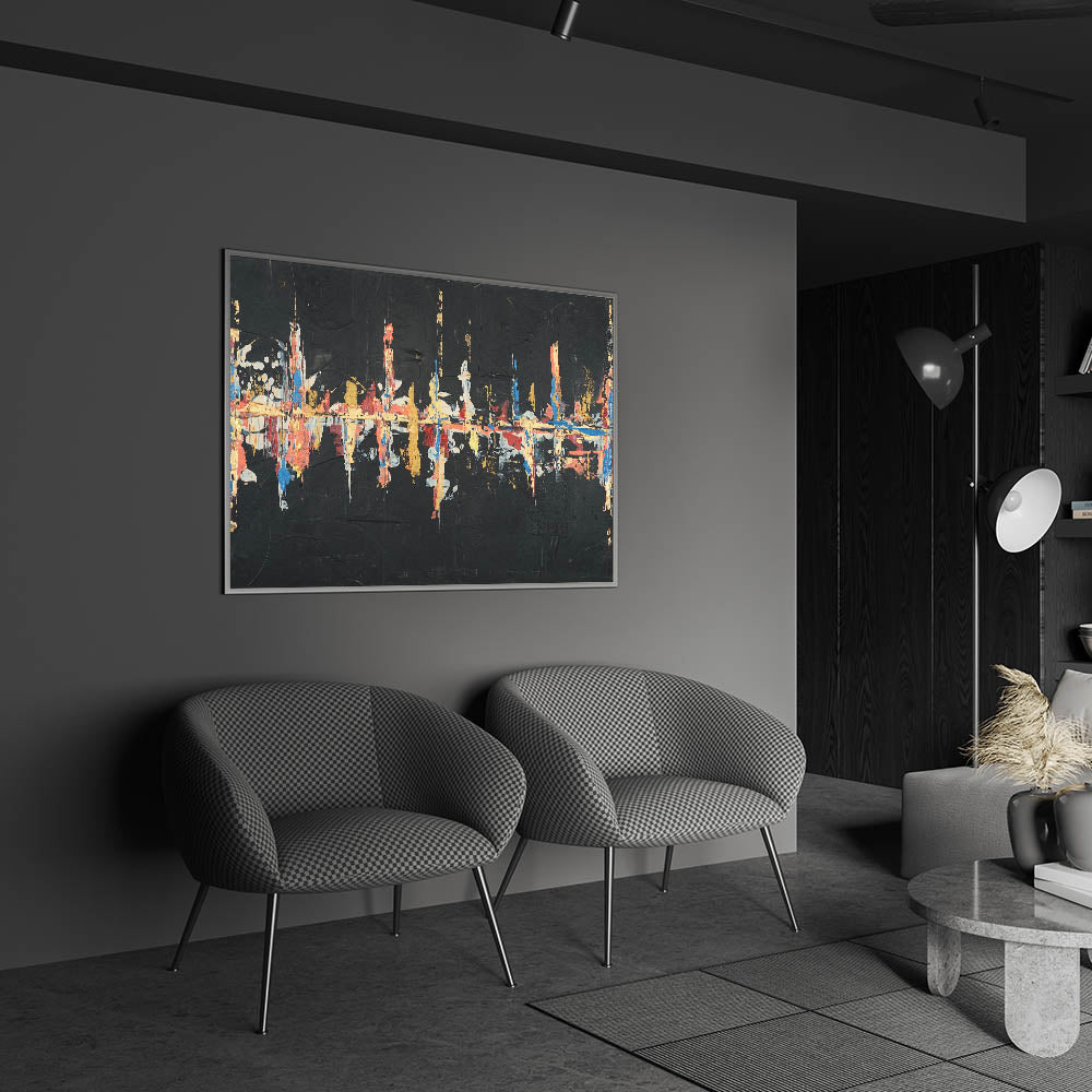 This stunning piece of abstract strokes and lines art is designed to impress and inspire. Perfect for living rooms, offices, or bedrooms, this artwork brings a contemporary edge to your decor with its unique blend of colors and geometric patterns.