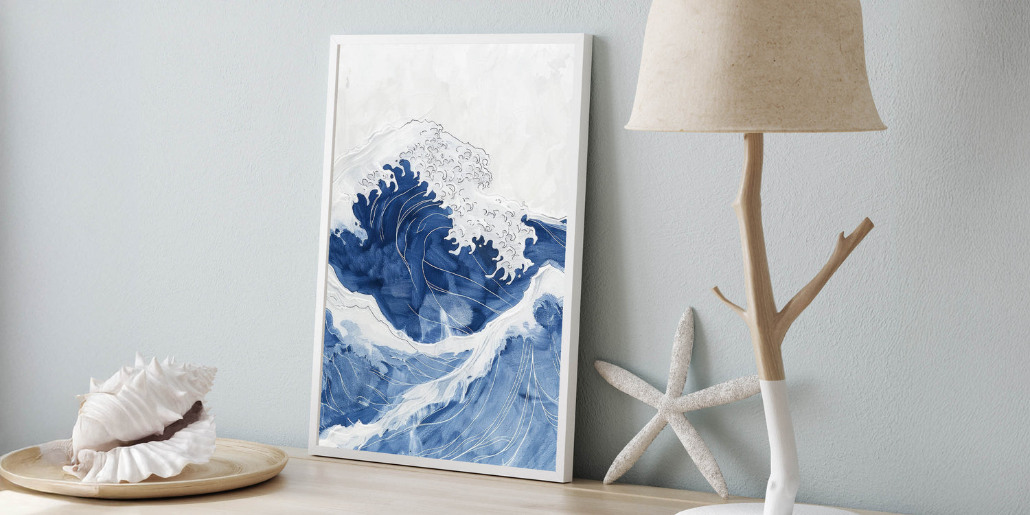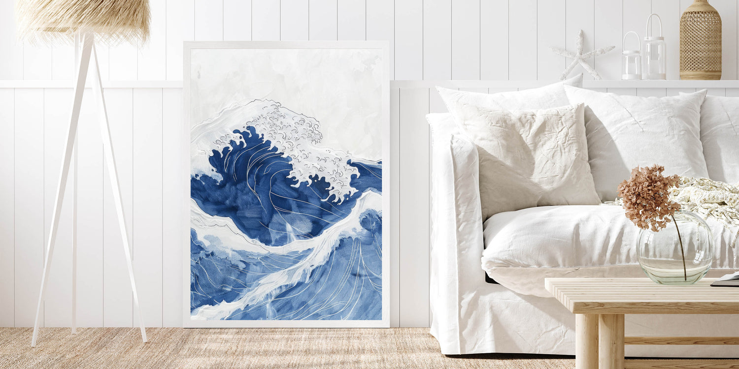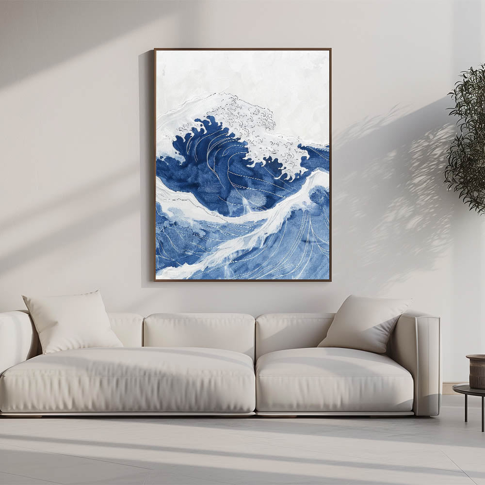 - High-resolution print guarantees that the rich blue tones and intricate wave patterns are vividly displayed.