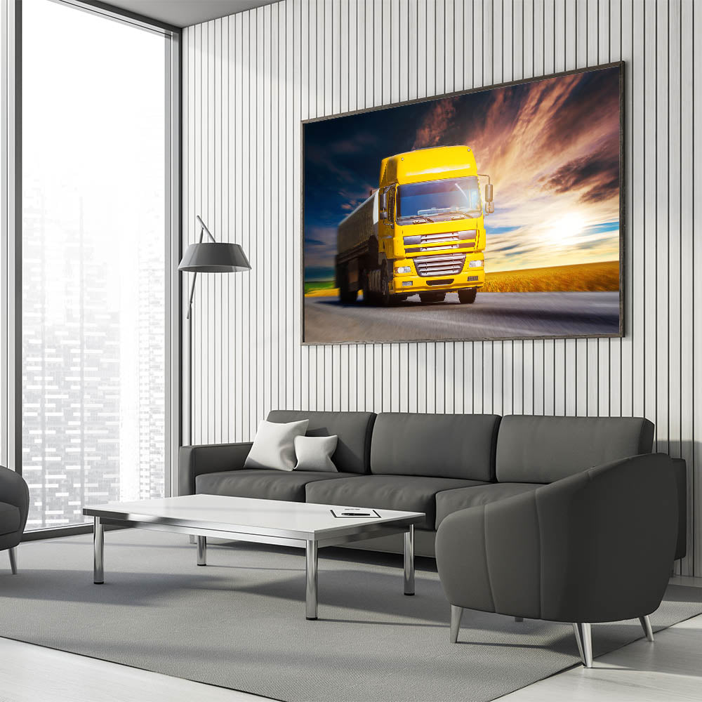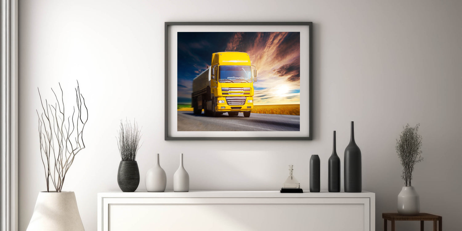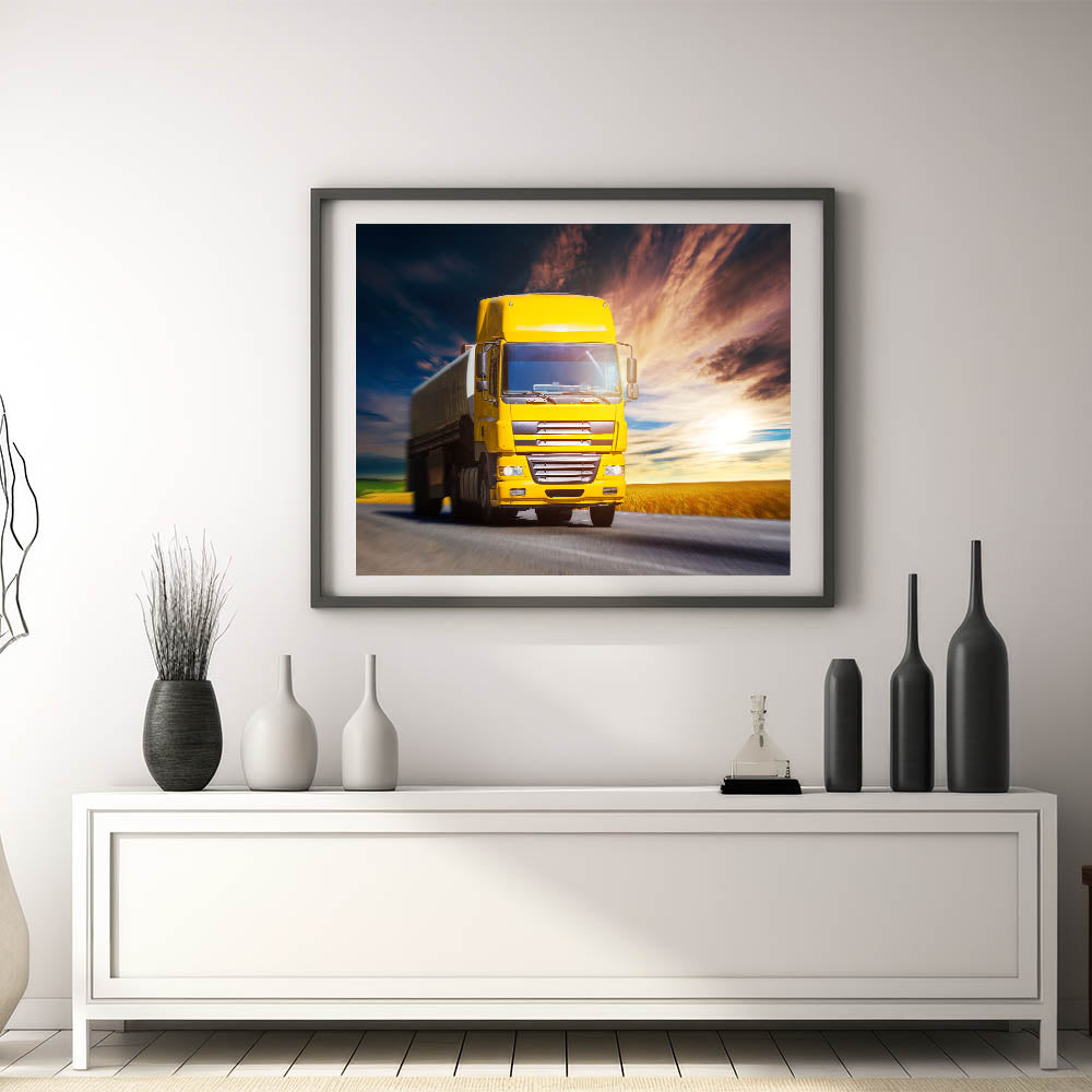 This piece is more than just wall decor—it's a statement. The vivid yellow truck against the dramatic sky creates a sense of movement and adventure, perfect for adding a modern touch to your home or office. Whether you're a lover of trucks, transportation, or just bold art, this print is sure to impress and inspire.