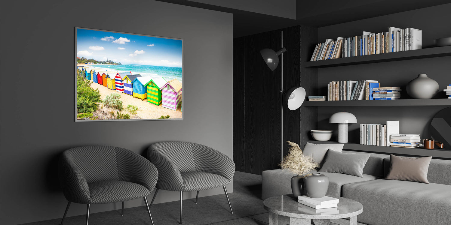 Add a splash of color to your space with this stunning wall art featuring Melbourne’s iconic Brighton Beach huts. The artwork captures the lively and vibrant colors of the beach huts, contrasted beautifully against the blue ocean and sky. This seaside scene is perfect for bringing a touch of Melbourne's coastal charm into your home decor. Whether you’re looking to create a lively atmosphere or simply add a pop of color, this artwork is a perfect choice.