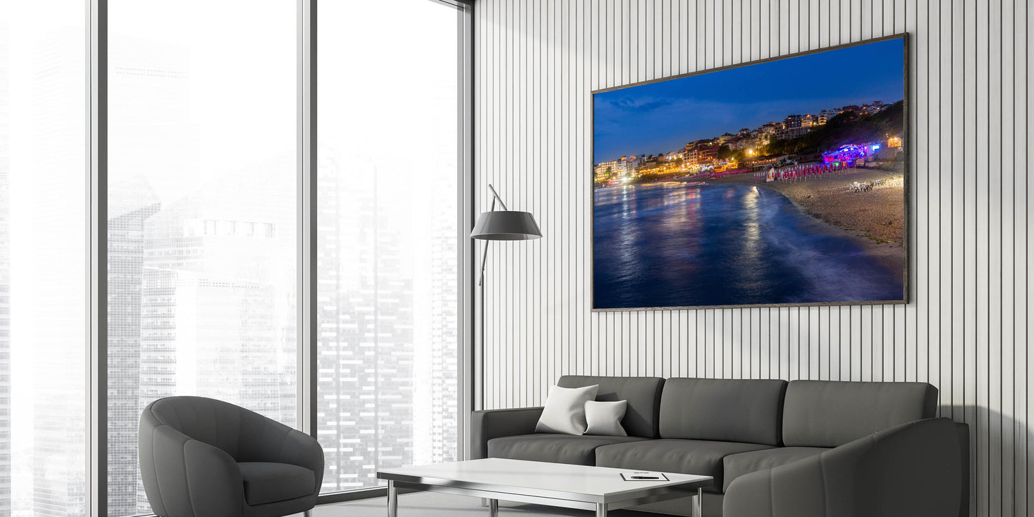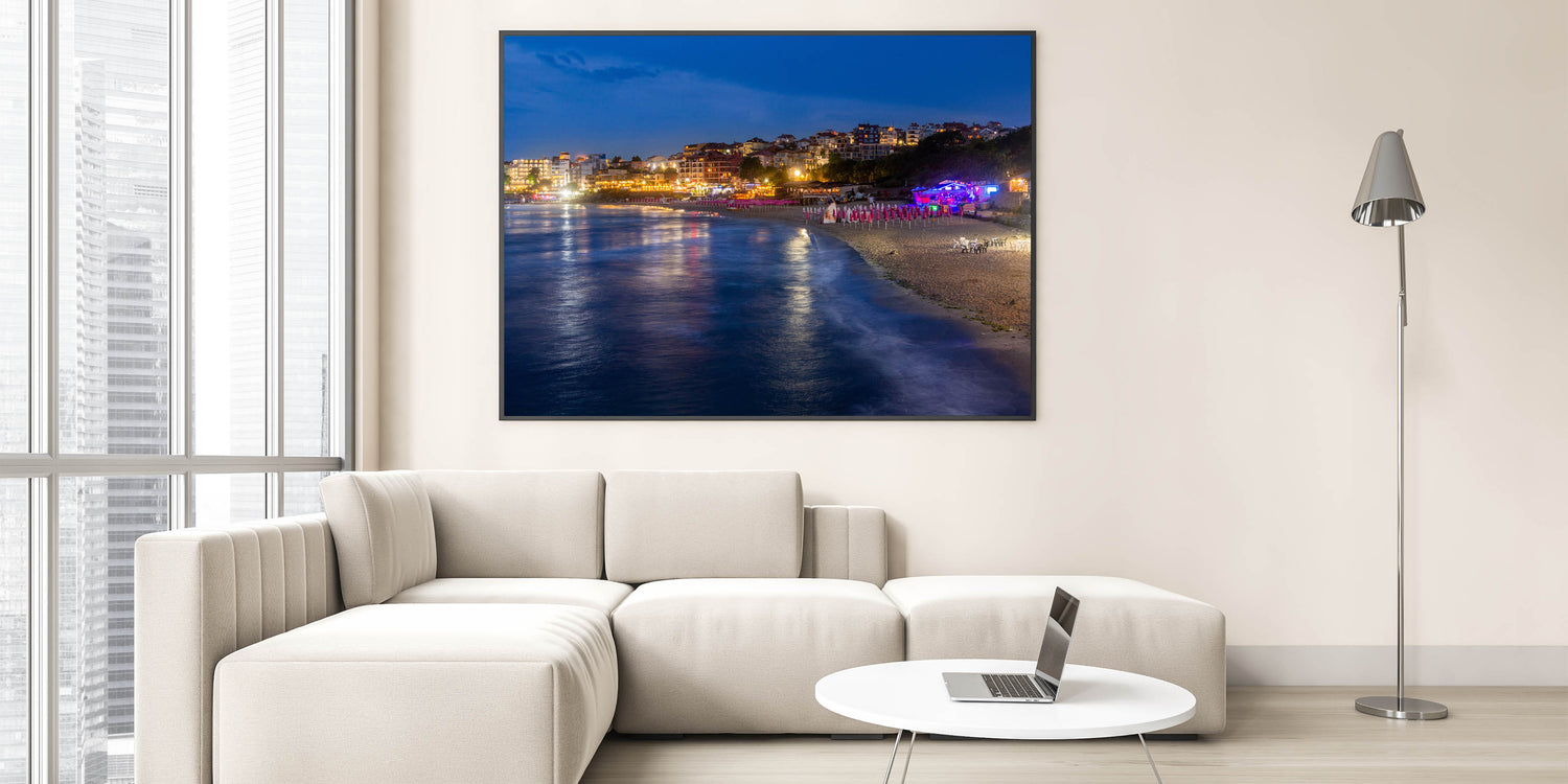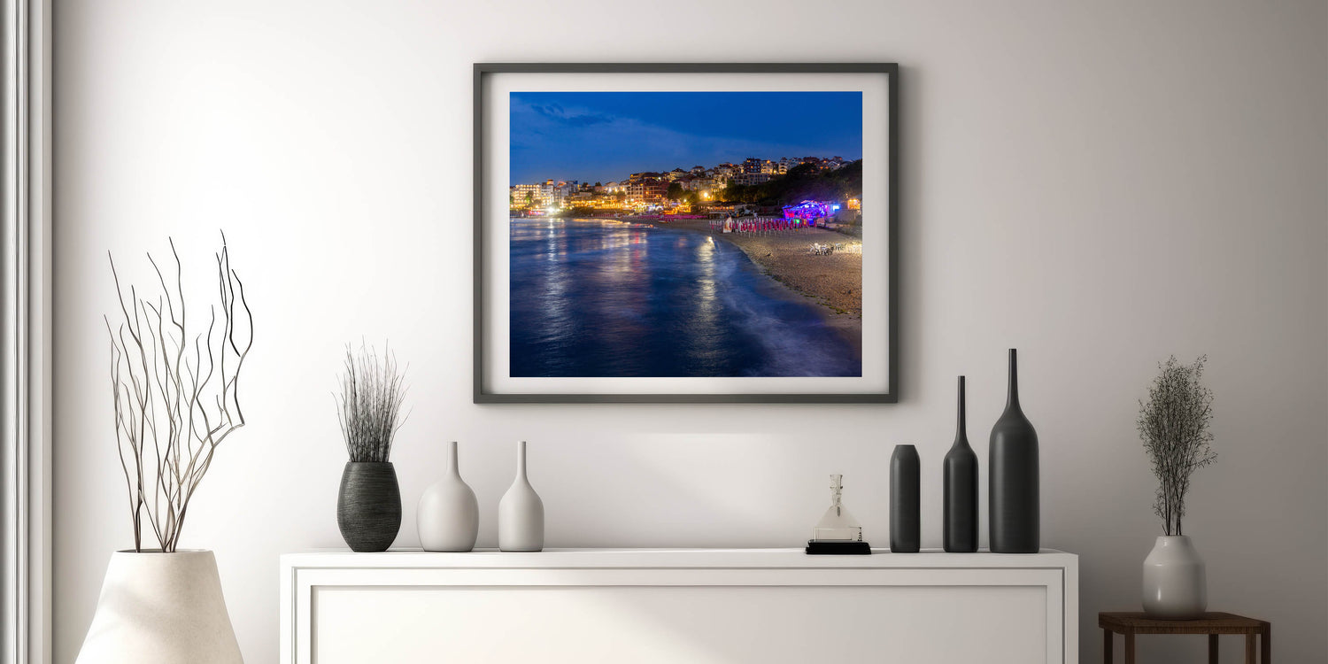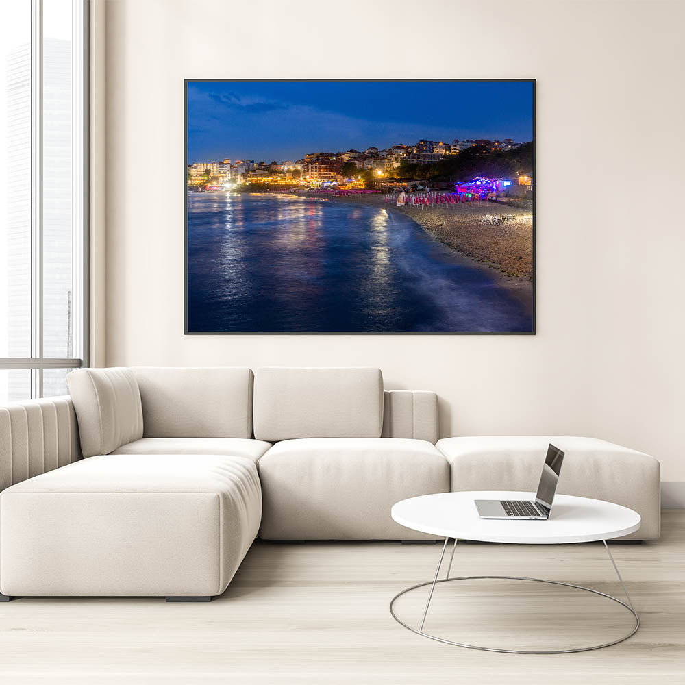 - Vivid Imagery: The artwork vividly portrays the glowing lights and reflective waters, bringing the essence of a Bulgarian summer night into your space.