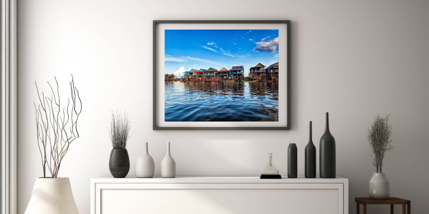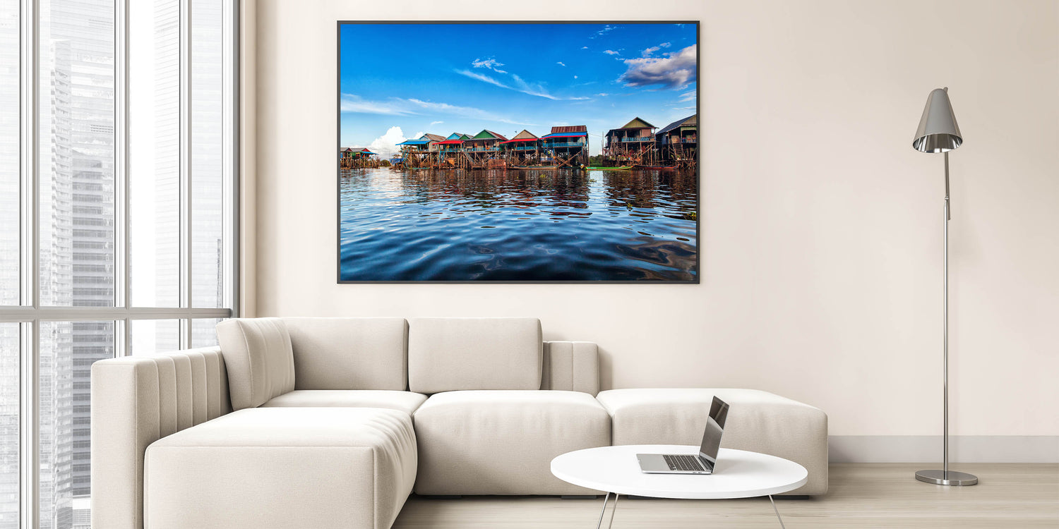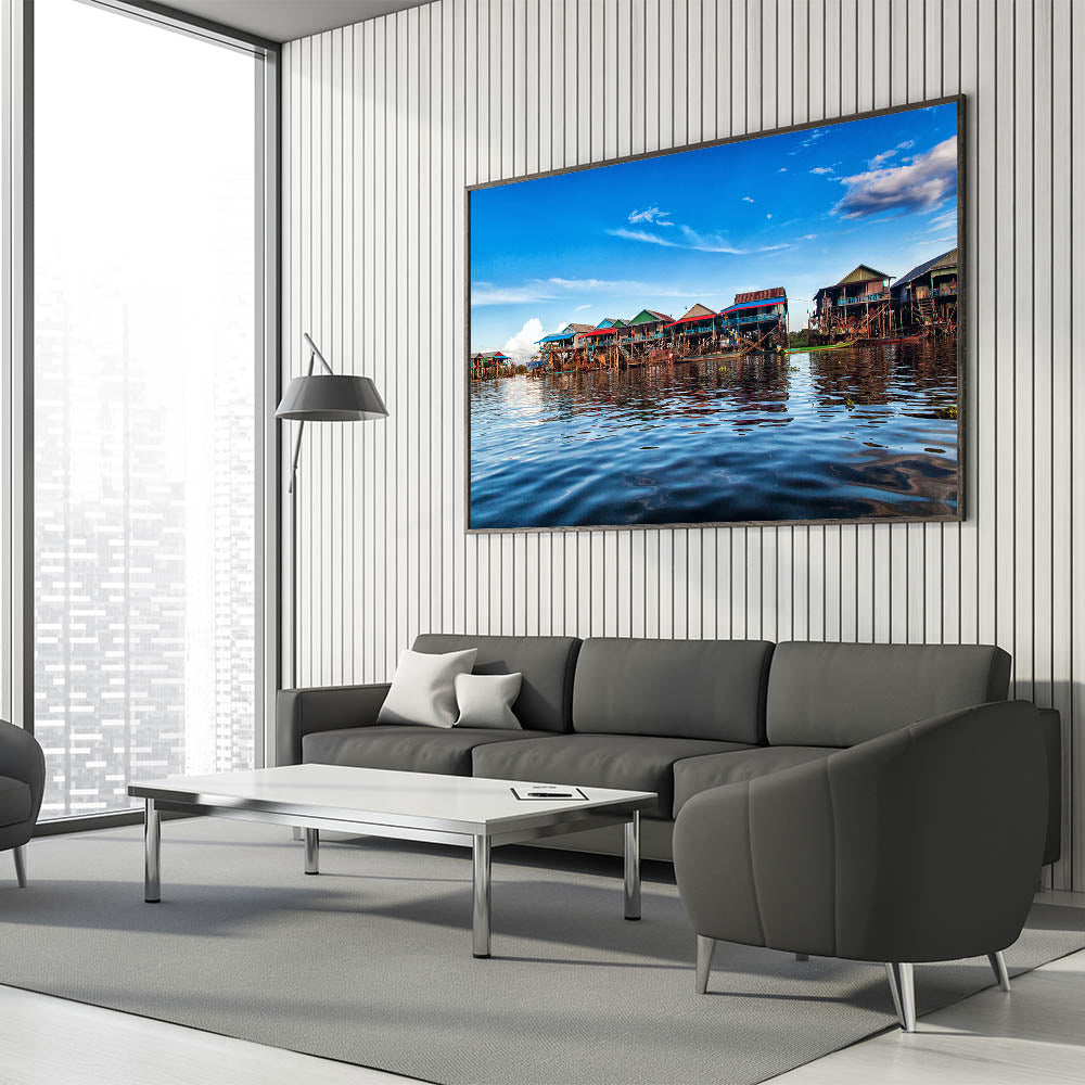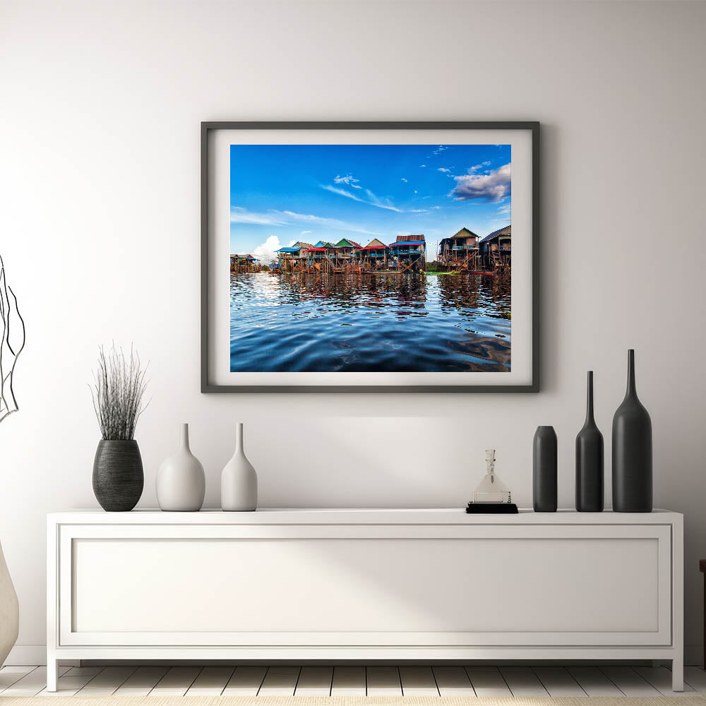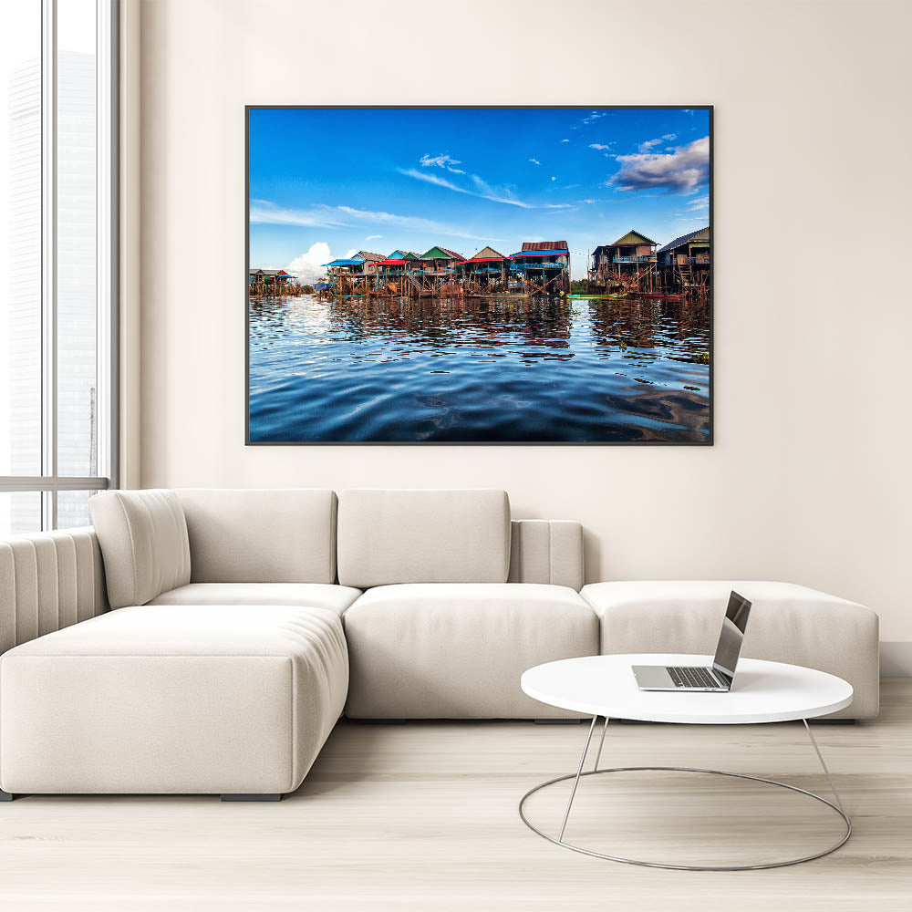 - High-Resolution Print: Every detail of the floating village is captured with stunning clarity, showcasing the intricate stilt structures and the vibrant hues of the homes.