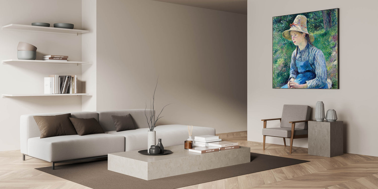 Enjoy the serene beauty of Pissarro's wall art with this captivating portrait, a must-have for art lovers who appreciate the quiet moments of life.