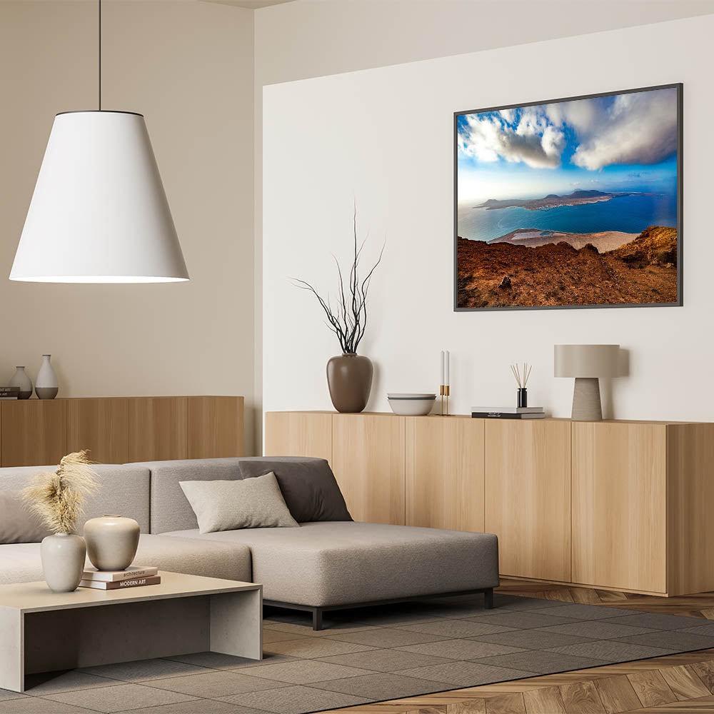 This scenic Canary Islands artwork is a perfect addition to any room, providing a window into the natural beauty of Spain's iconic islands. Whether you choose a framed print or a canvas option, this piece will add a touch of serenity to your home.