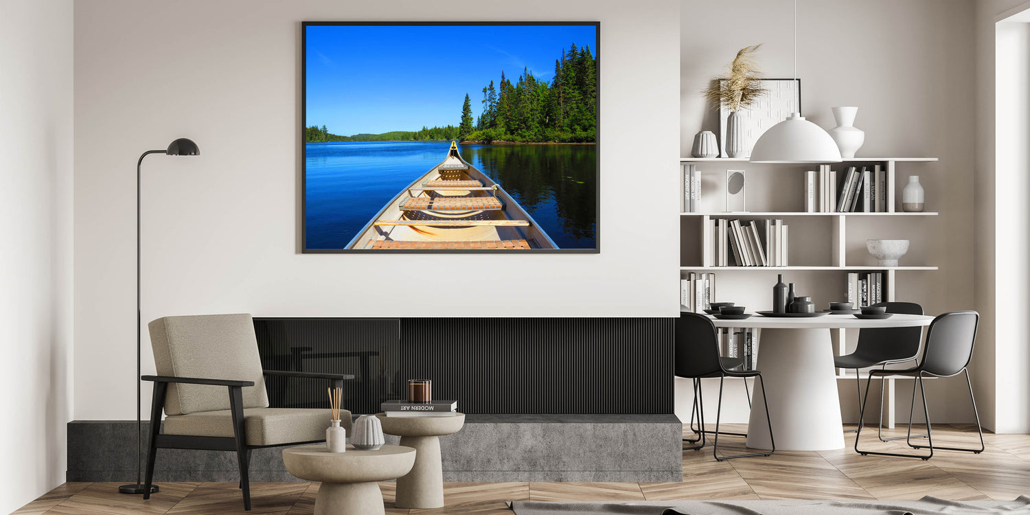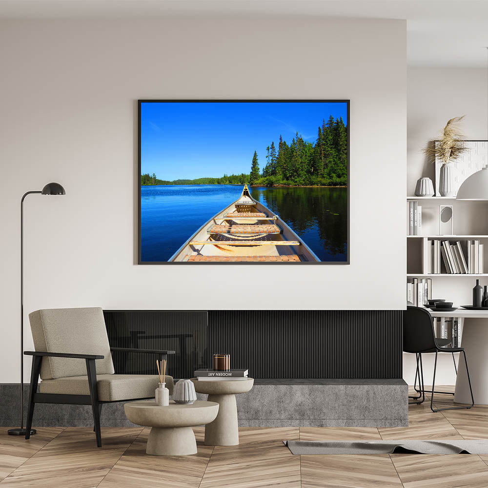 Canoe Adventure Wall Art Quebec – Serene Lake Landscape Photography