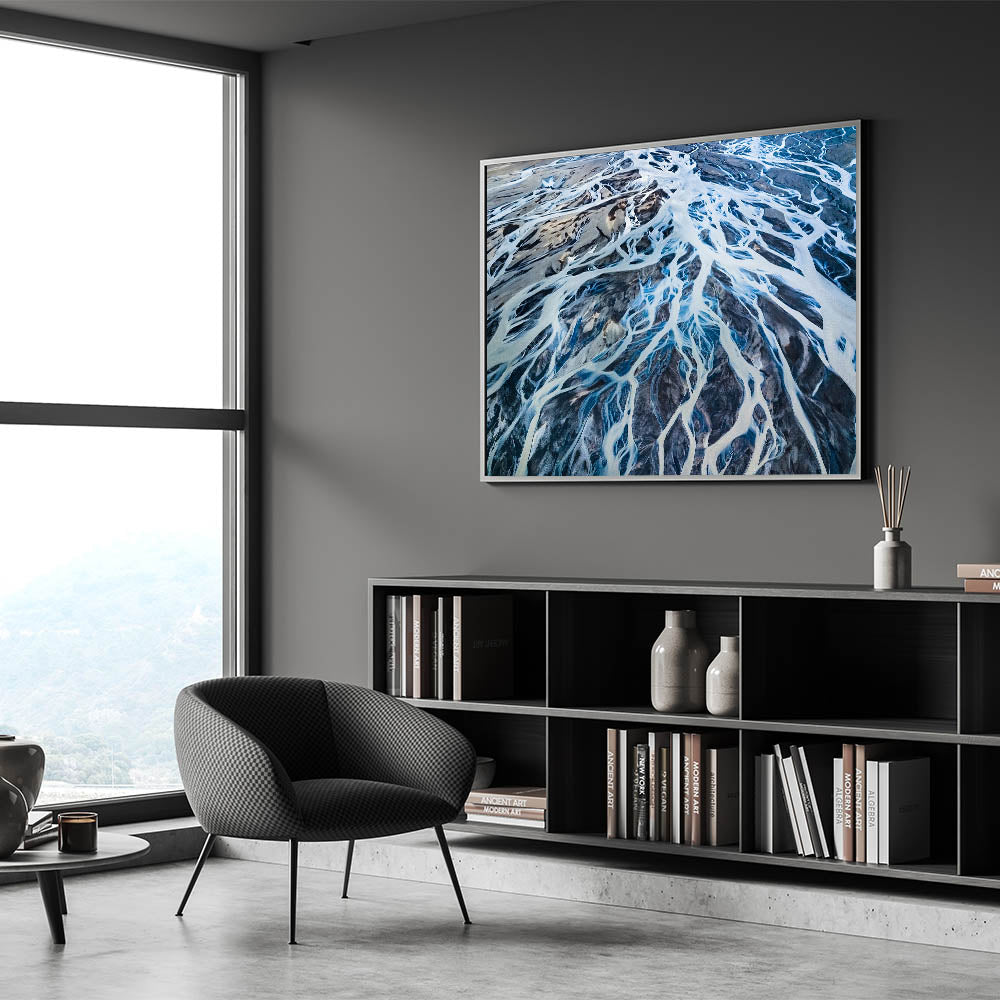 - Premium Canterbury Wall Art featuring an aerial view of braided river networks in New Zealand