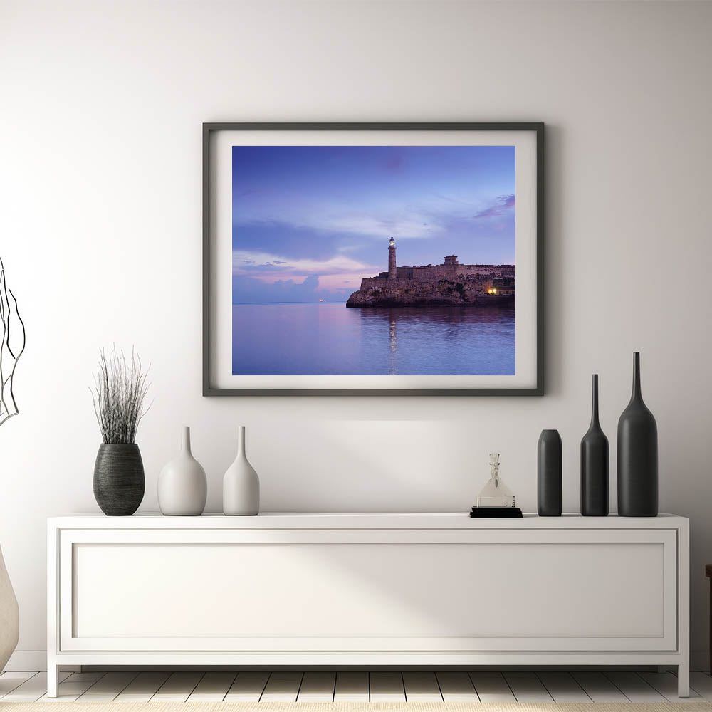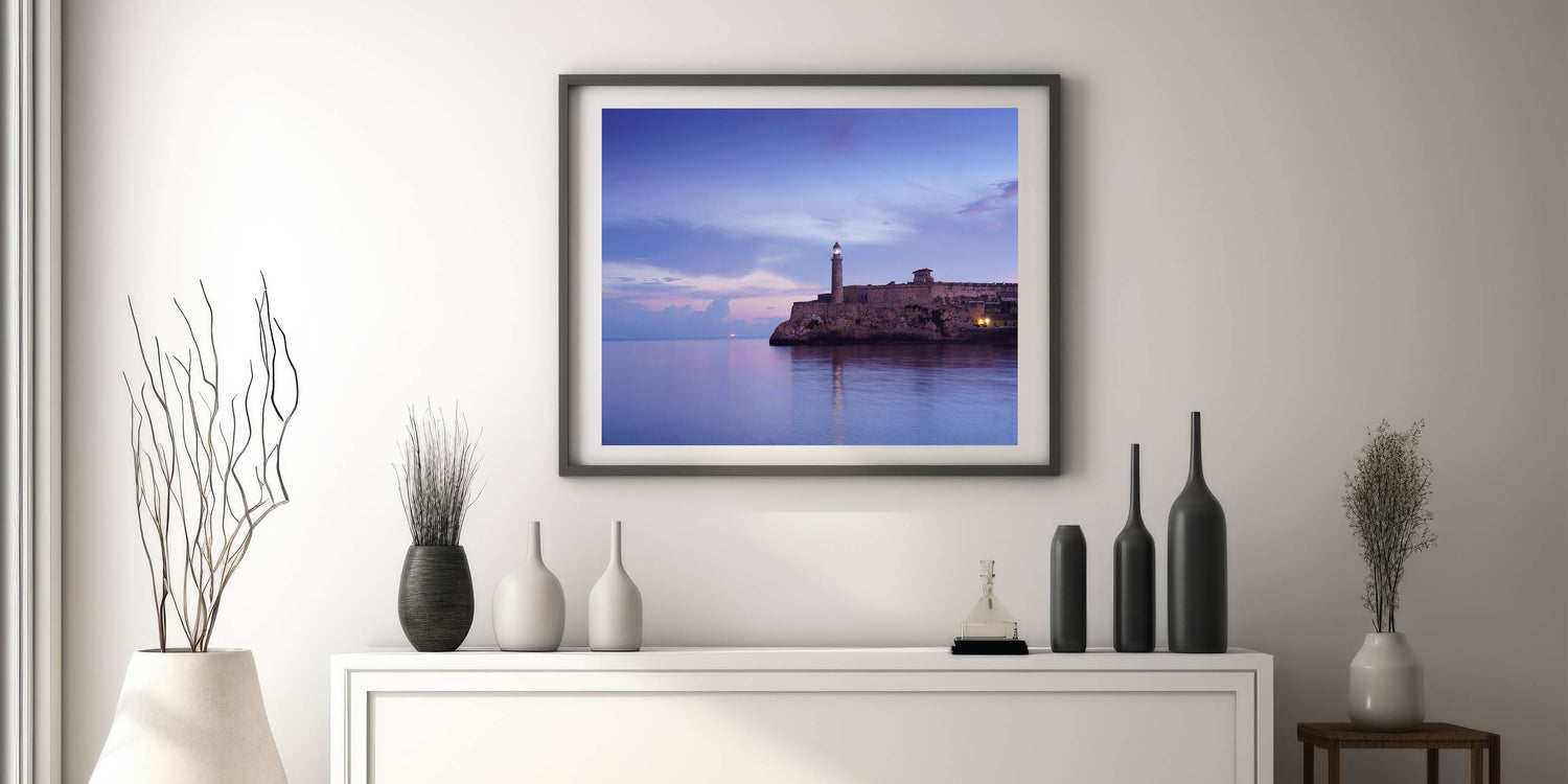 Bring the serene beauty of the Cuban coastline into your space with this stunning depiction of a lighthouse overlooking the calm Caribbean waters. This Cuba Wall Art highlights the peacefulness of Cuba's coastal regions, featuring an iconic lighthouse that stands as a testament to the country’s maritime history. The vibrant hues of the sunset sky blend perfectly with the tranquil sea, creating a harmonious and calming scene, perfect for any room needing a touch of serenity.