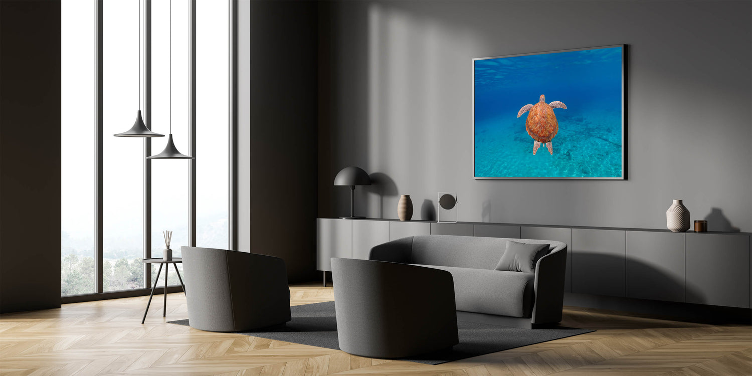 - Striking Color Detail: The vivid portrayal of the turtle’s shell contrasts beautifully against the deep blue sea, bringing a splash of color and life to your walls.