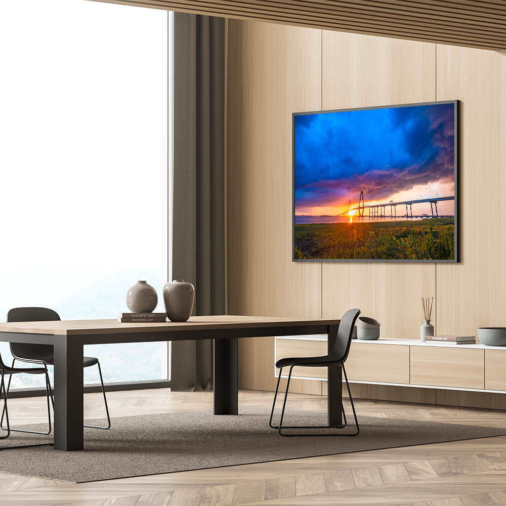 This Ravenel Bridge sunset print is ideal for anyone who loves Charleston photography or is looking to enhance their space with a captivating piece of Southern art. Whether it's for a living room, office, or gallery, this print brings the stunning beauty of Charleston’s skyline right into your home.