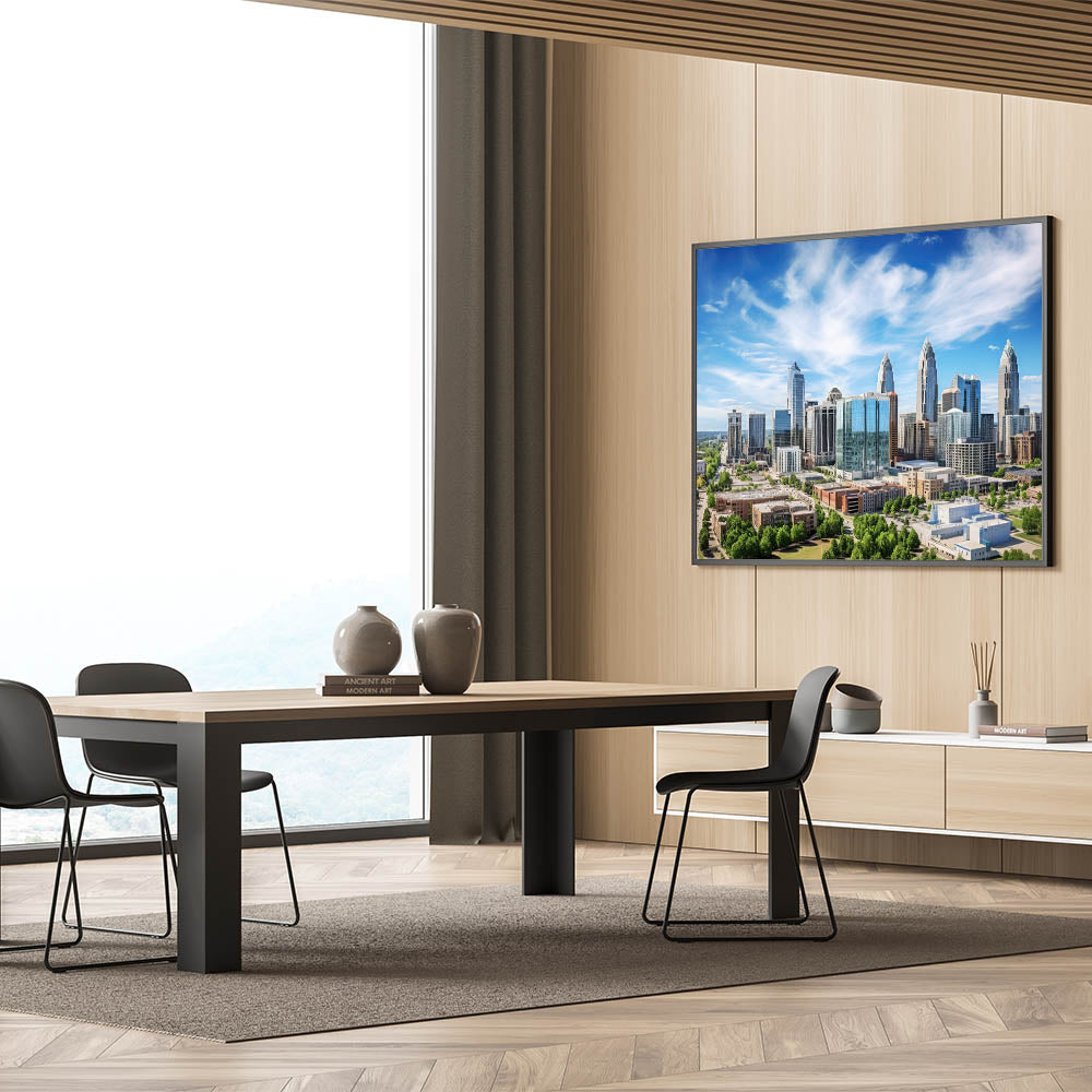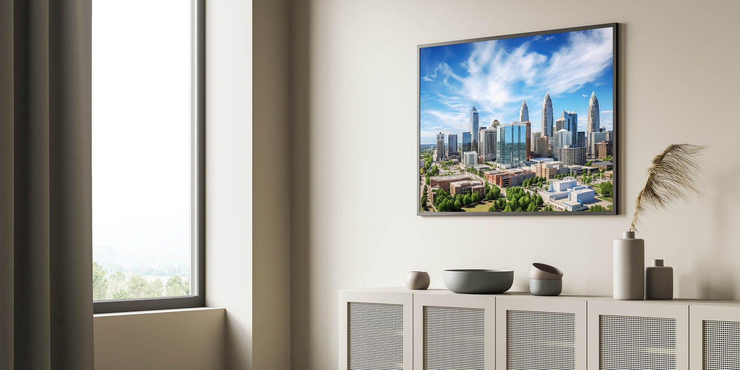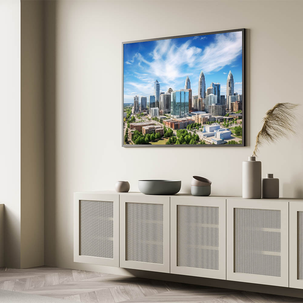 - Vibrant and Clear: High-resolution print showcases the detailed architecture of Charlotte with bright, lively colors.