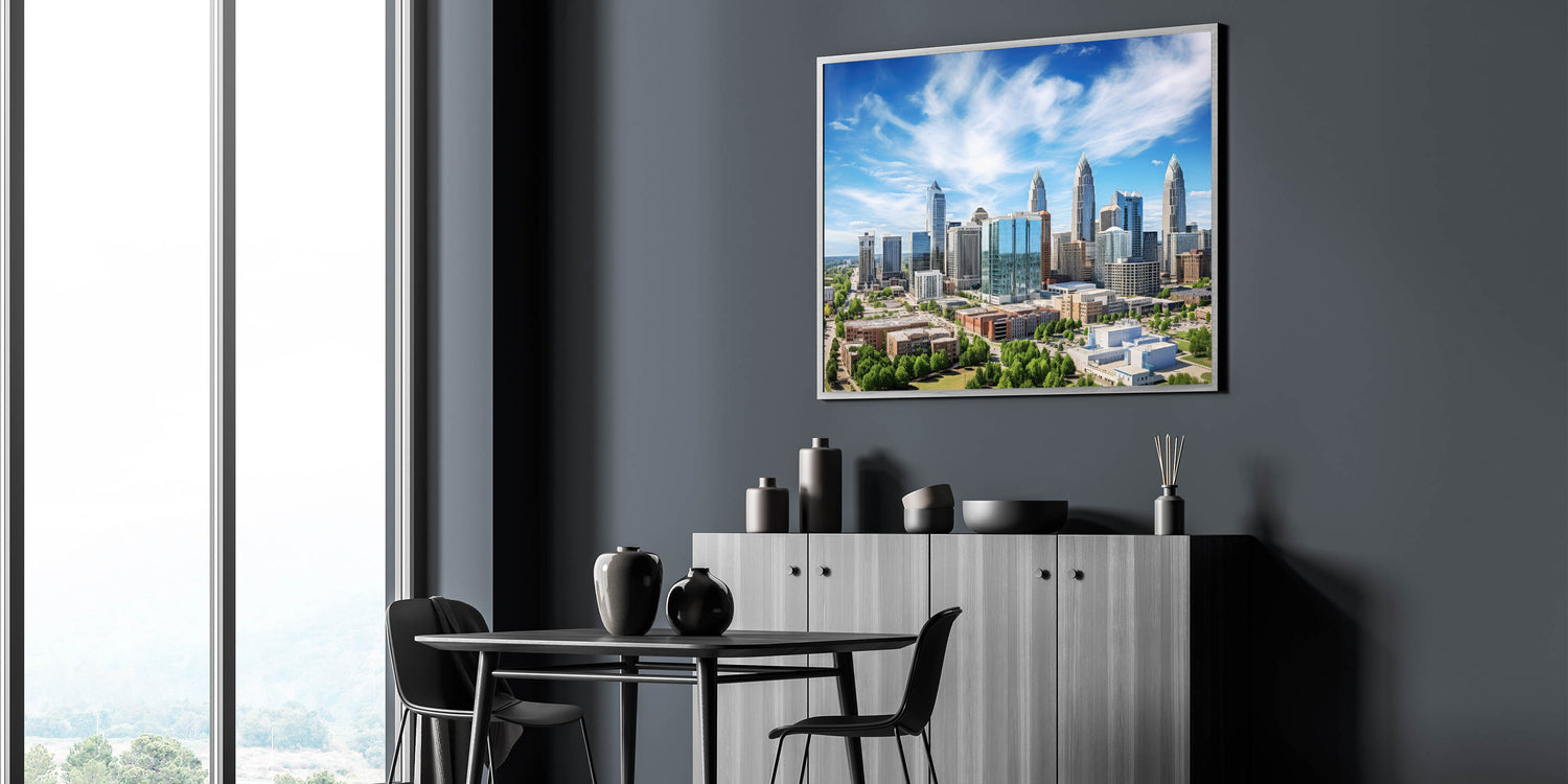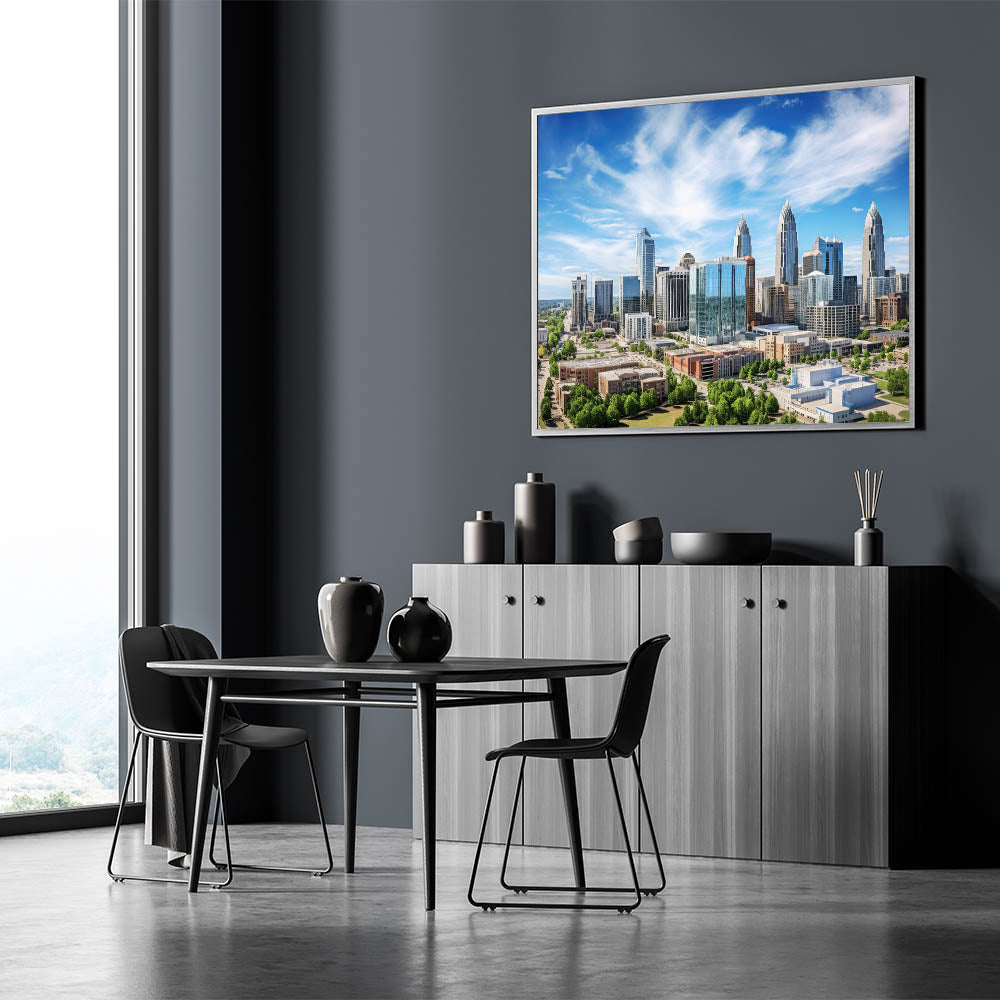 Celebrate the beauty of Charlotte with this fresh and modern wall art. Perfect for anyone who loves urban landscapes, this piece brings the spirit of the city into your home, creating a lively and inviting atmosphere.