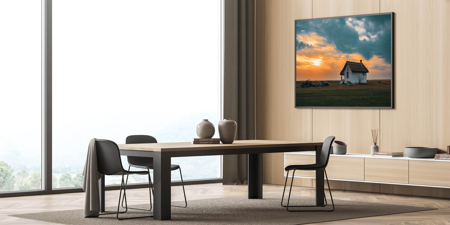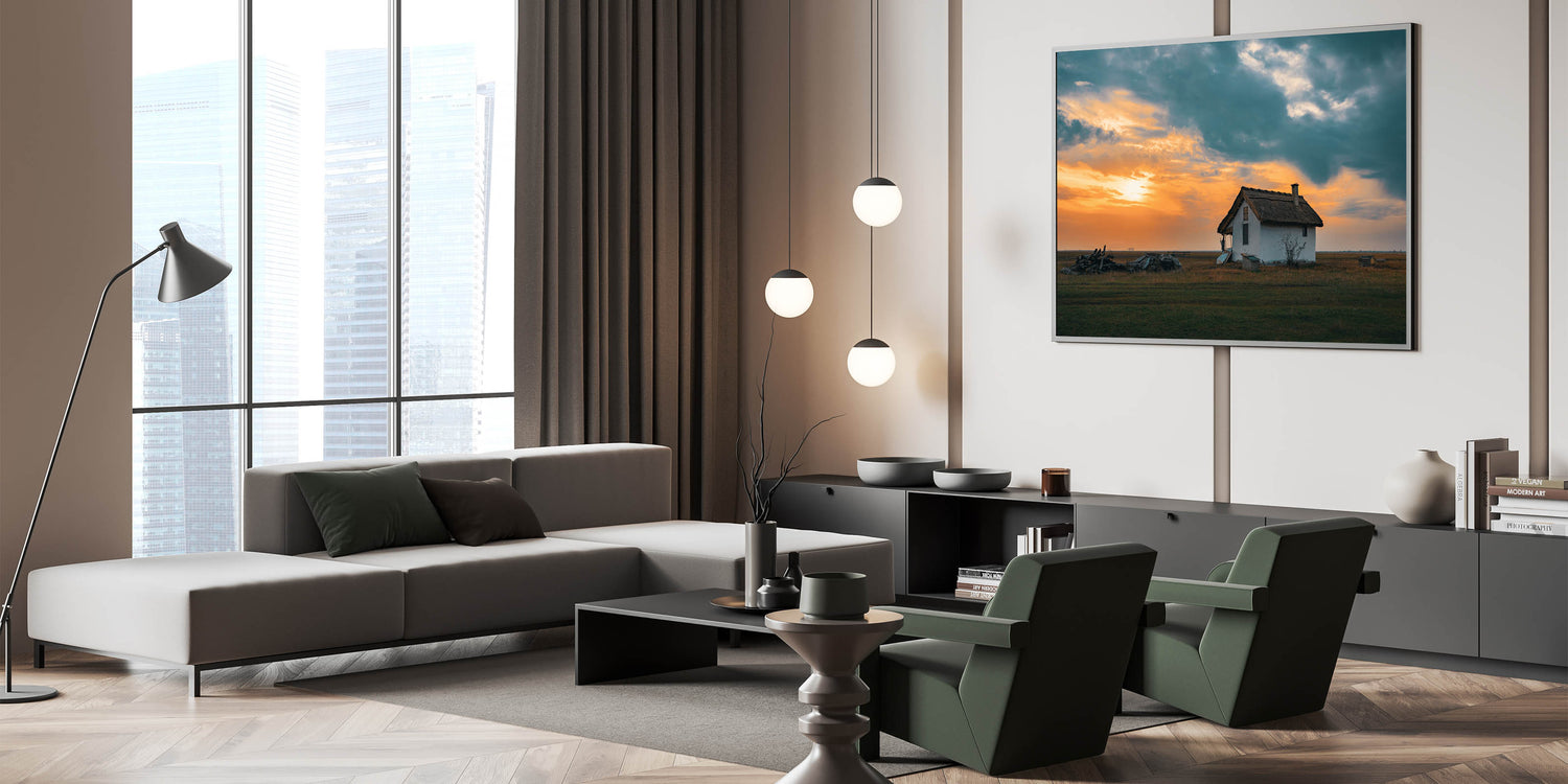 - High-quality house canvas prints available in various materials, including stretched and framed canvas, acrylic glass, and rolled prints.
