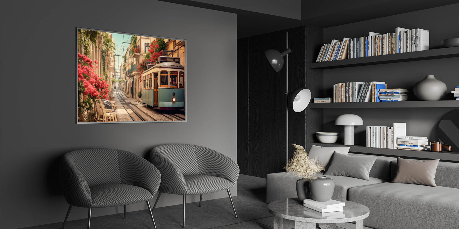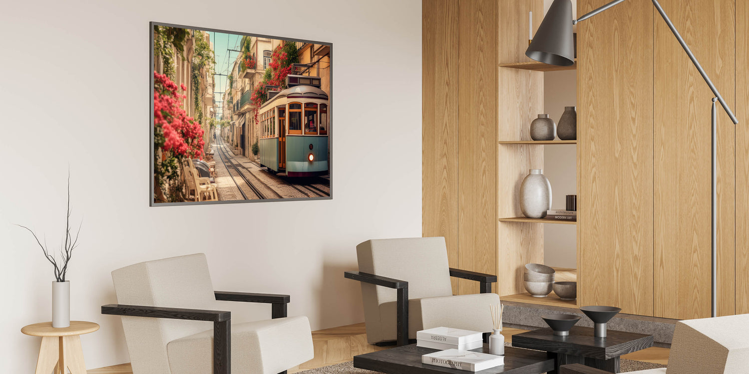 - Unique Wall Art Featuring Scenic Streetscapes: The combination of a classic tram and a picturesque alley makes this artwork a standout addition to any home or office.